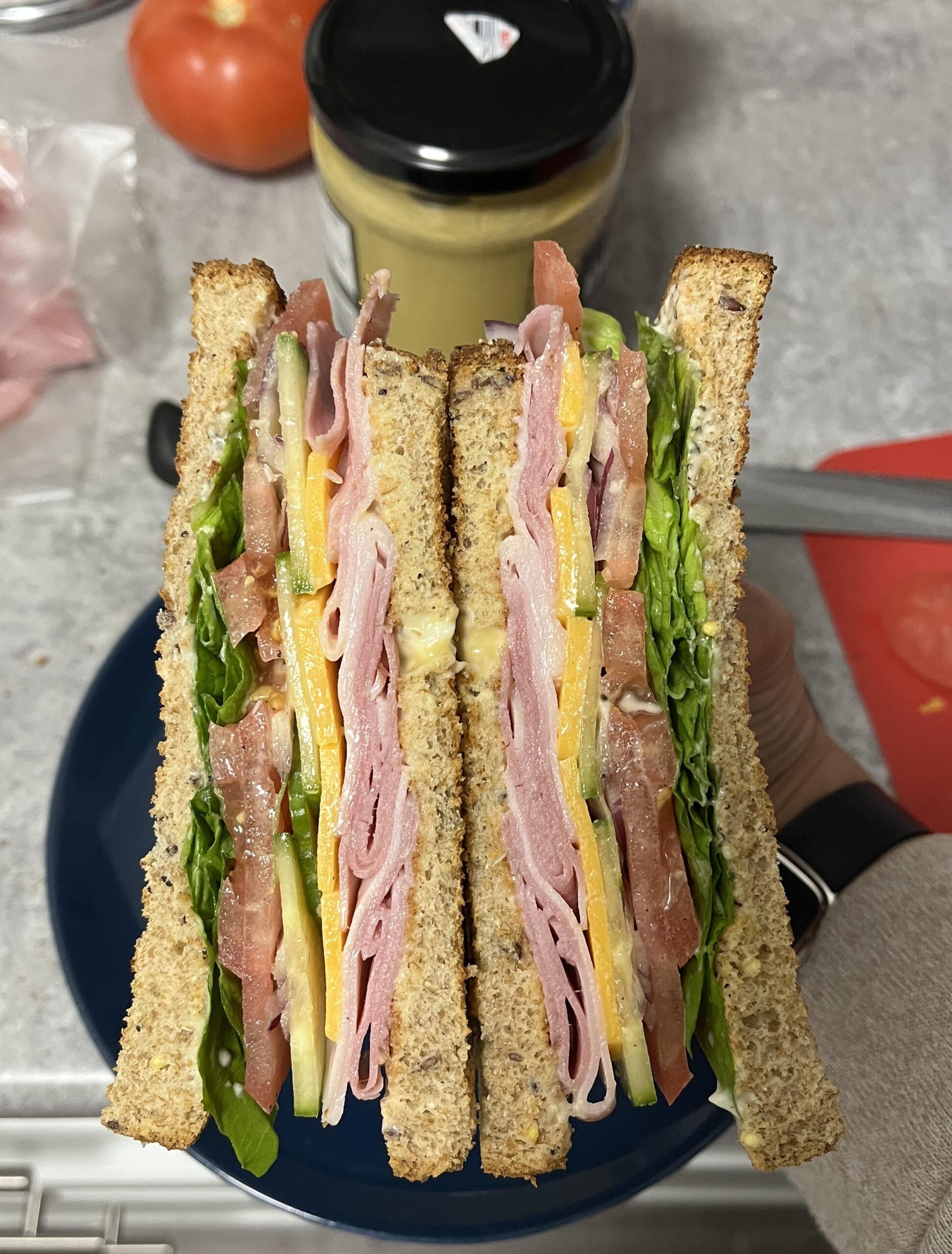 Mayo, cheese. And I think ham and tomato needed to touch for 3-4 hours to do it thing