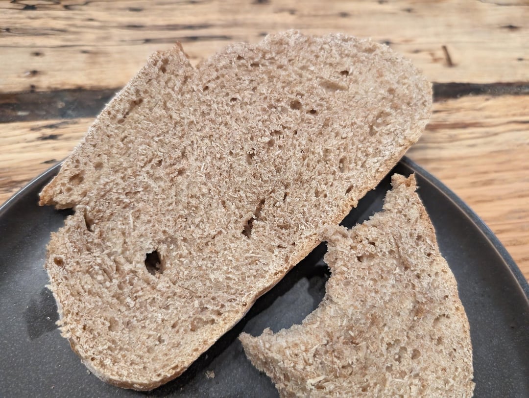 I’m trying to see the shape of the holes in your loaf, but the focus isn’t quite clear enough. I think you have some collapsed, wide holes instead round ones. That’s a sign that so much fermentation has occurred that acid has built up. That eats the gluten structure and causes the holes to be flattened. I think your bulk rise is too long.