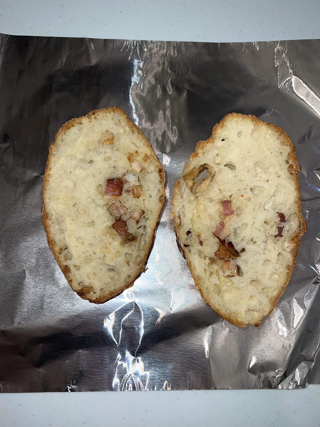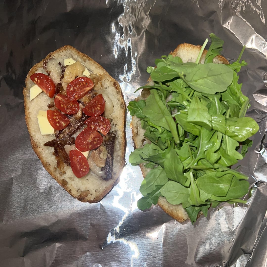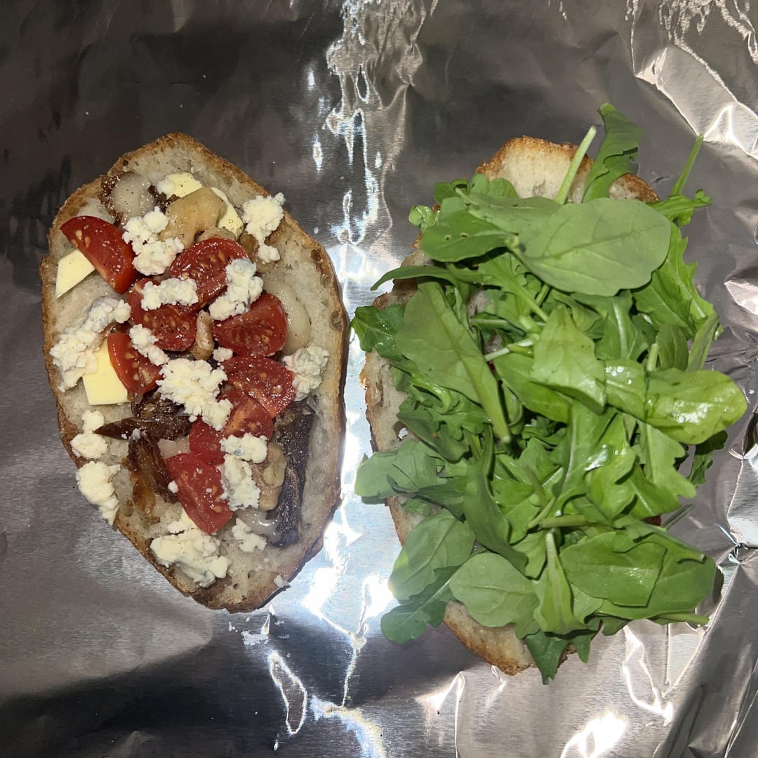 Bacon lardon and Gruyère baguette with butter, lehua blossom honey, walnuts, date, dressed flavor bomb cherry tomatoes, arugula, and rogue river blue by djmasterx5000 Write A CommentYou must be logged in to post a comment.