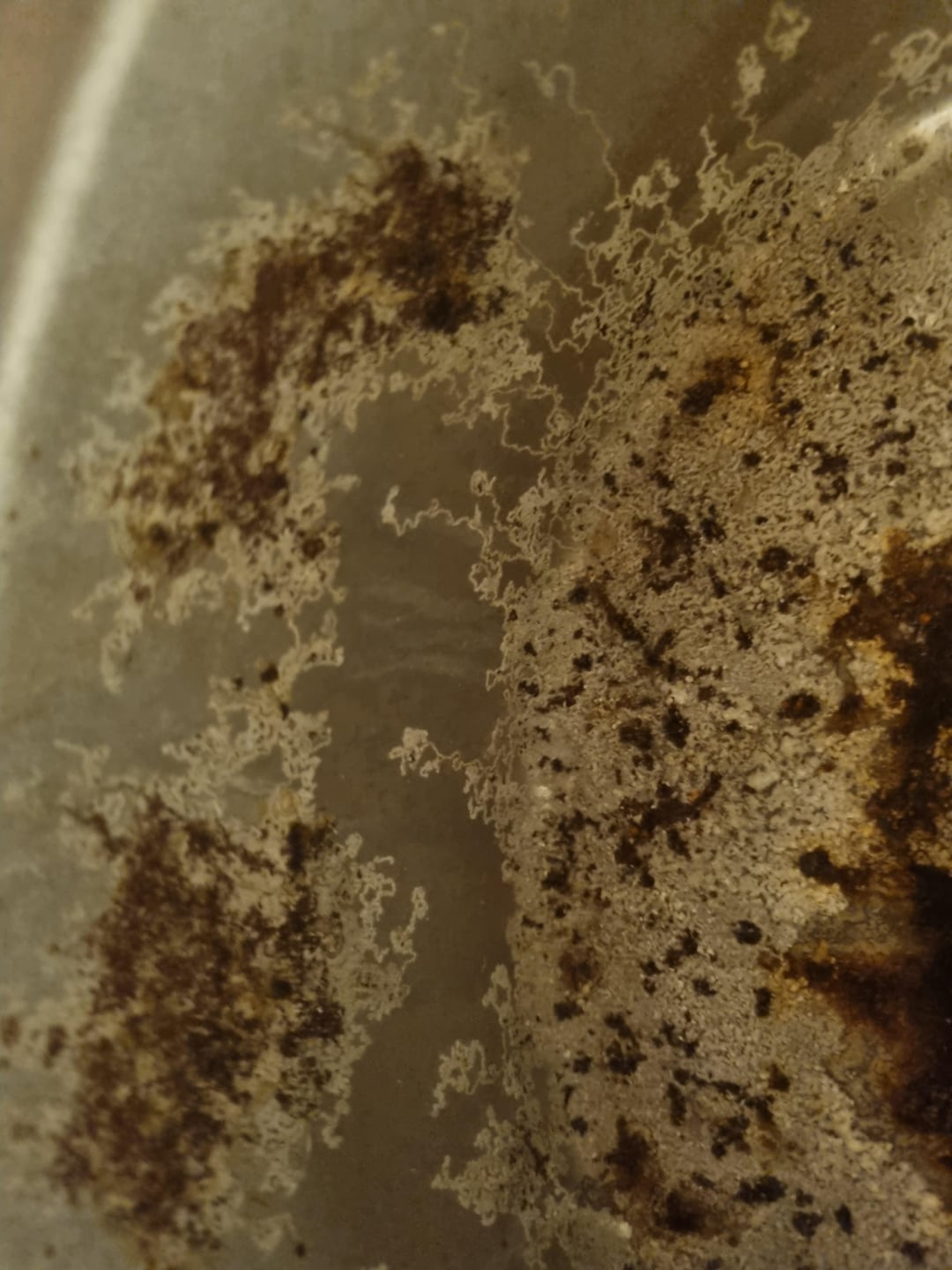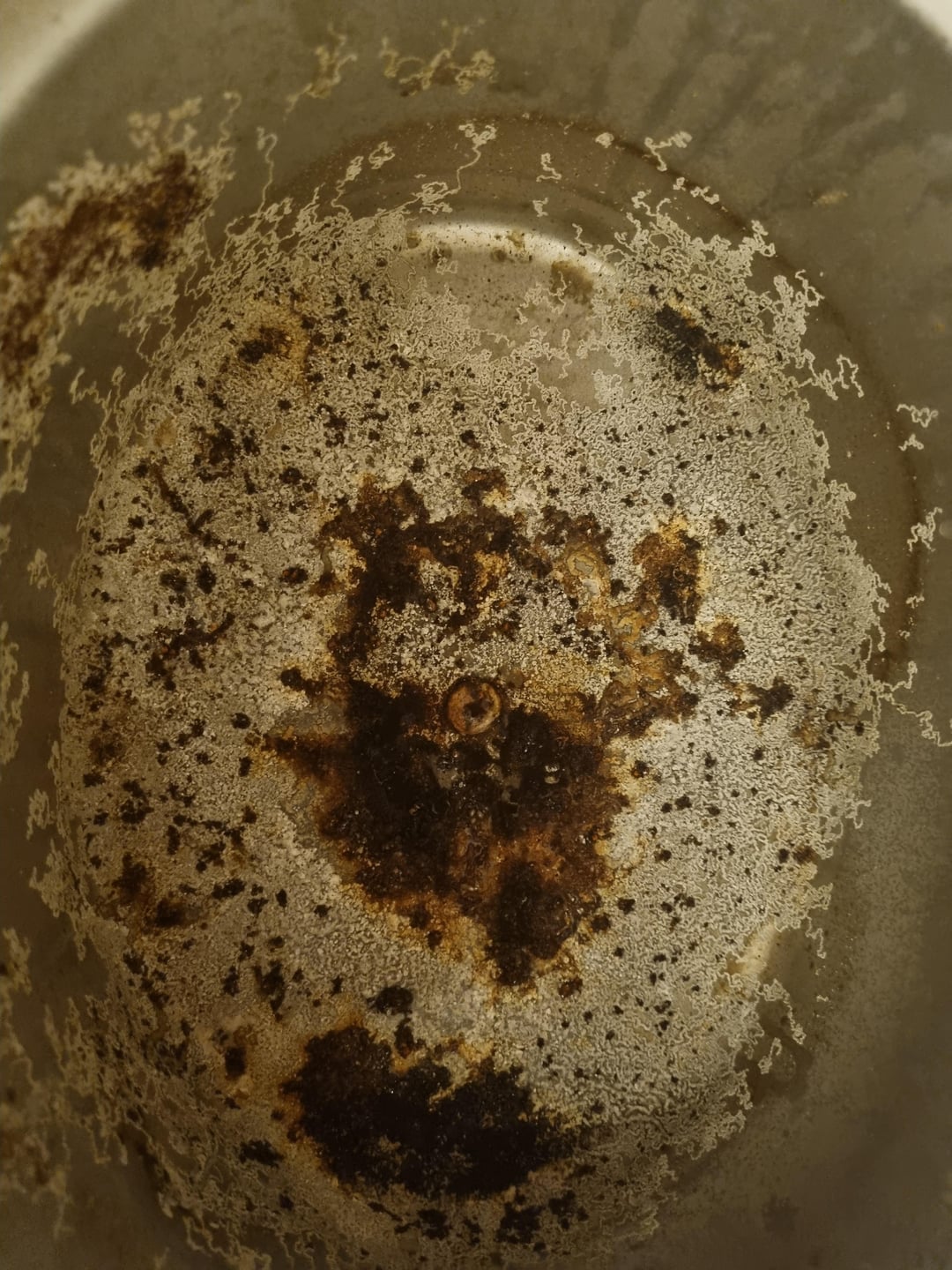 I think I put the porcelain cooking thingy on top while this metal was wet. Now its all fungus all over. What do I do??