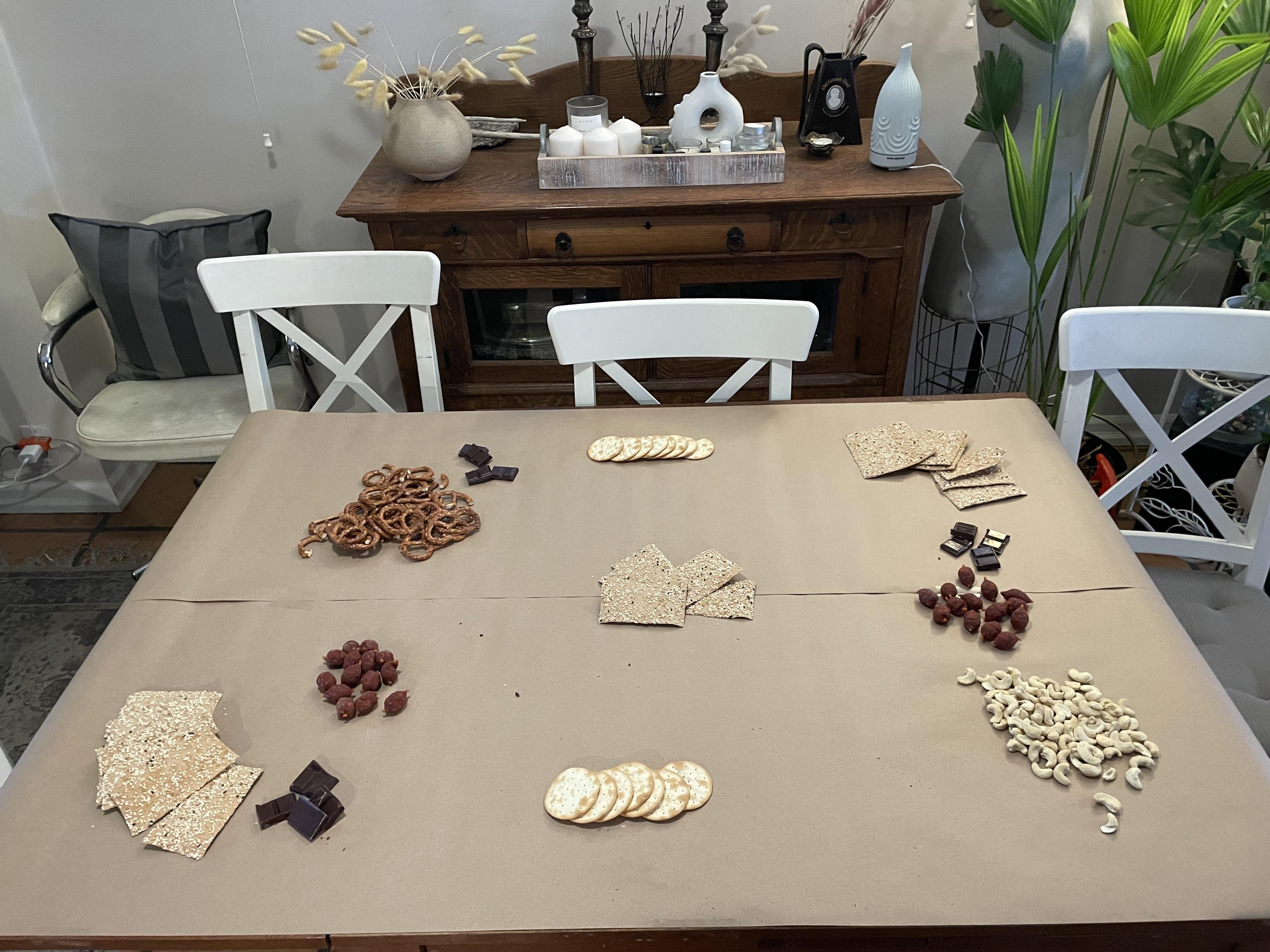 The spacing and overall contents are just so off. Especially awkward with the chairs there, are people going to be sitting at this table to snack? What is going on here.