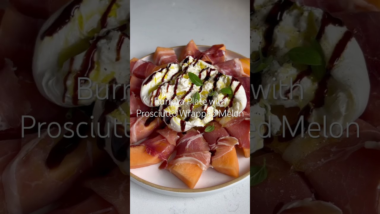 💕Wrap prosciutto around melon slices and place in a sunburst pattern 💕Add a handful of spinach in the middle and place the torn Burrata on top. 💕Finish with flaky salt, fresh pepper, a drizzle of olive oil and balsamic glaze