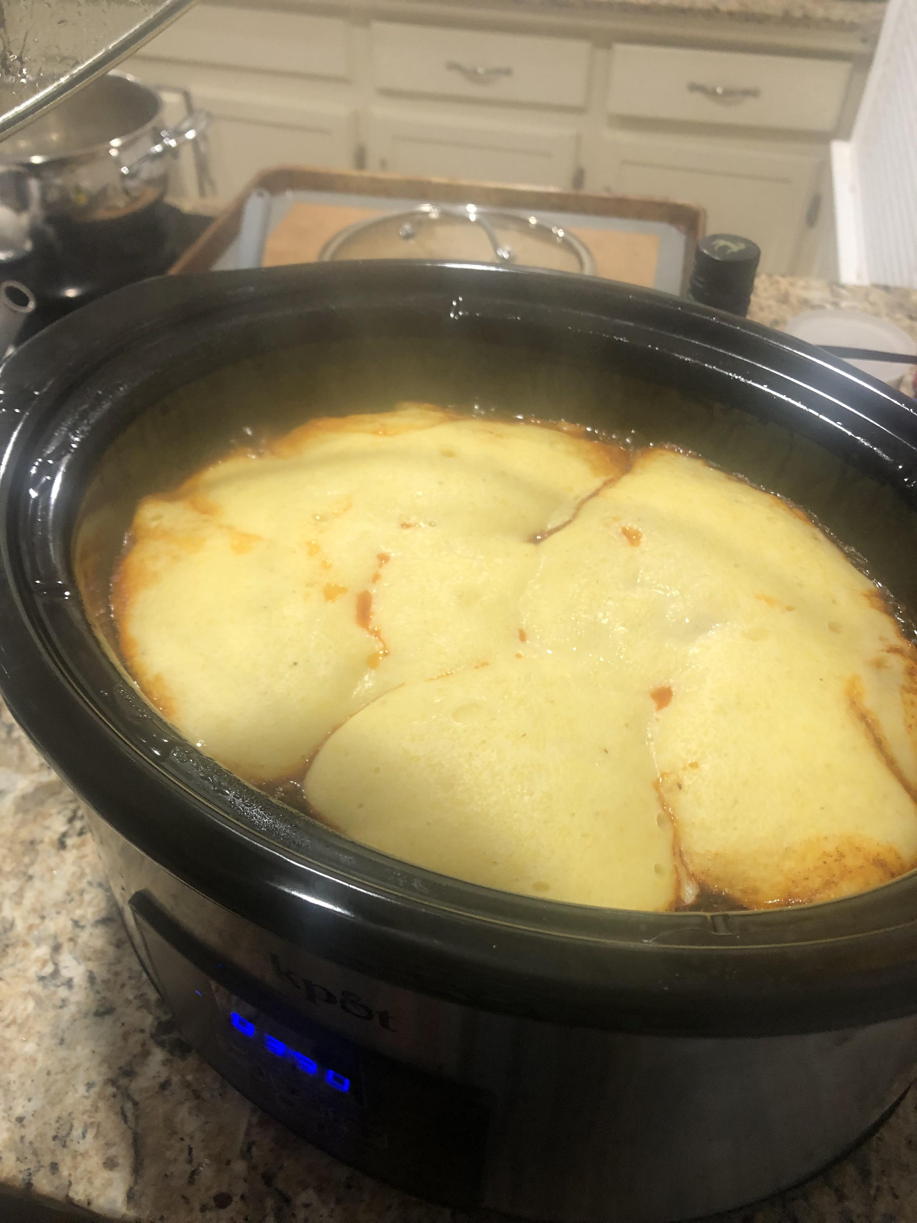 Add cornbread mix as evenly distributed dollops on top, then cook for 3 more hours
