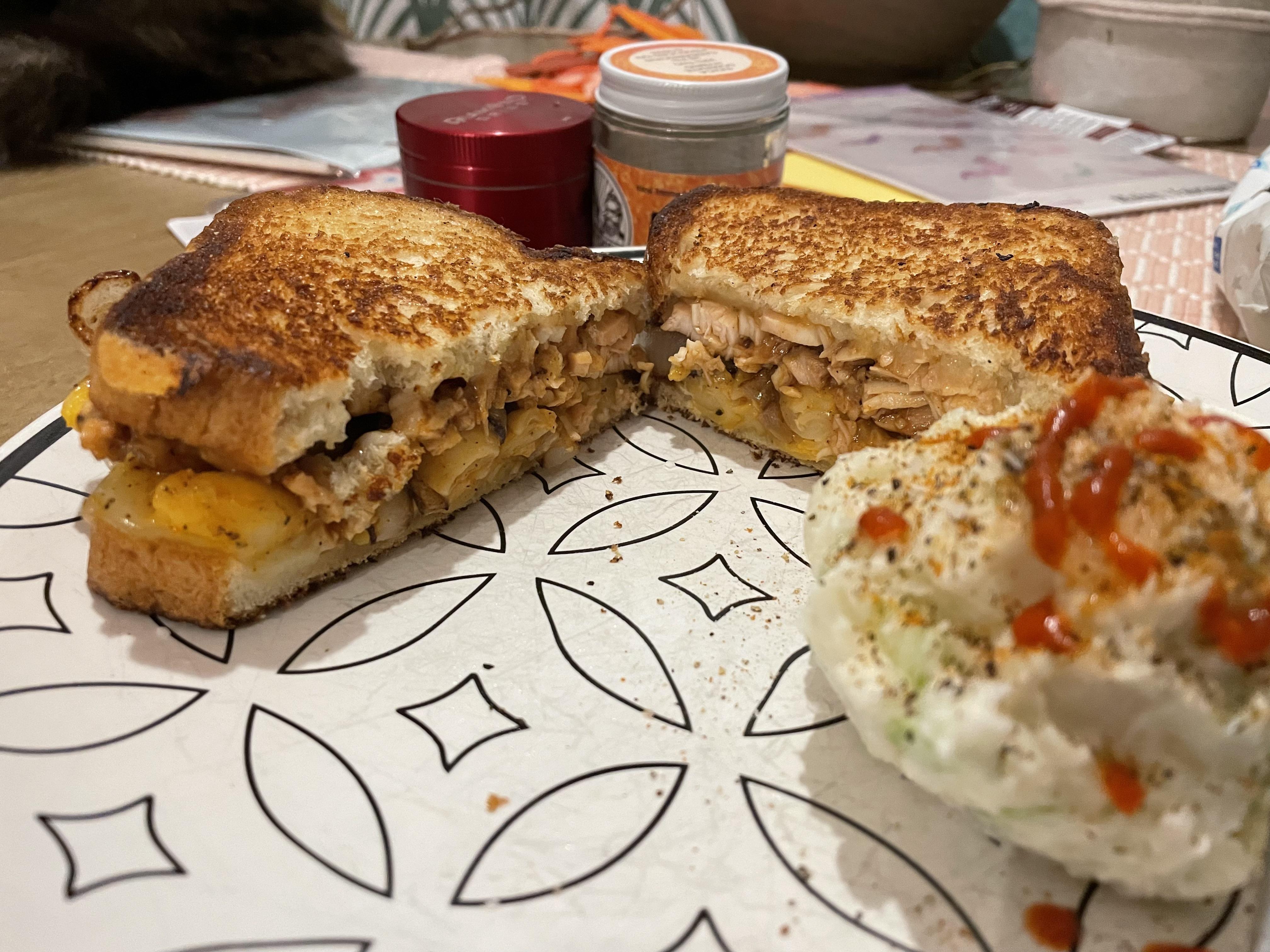 BBQ chicken on a grilled cheese with cheddar, velveeta shells and grilled onions. Side of potato salad.by bigtimesauce 2 Comments YaBoiErr_Sk1nnYP3n15 2 years ago My brother in christ is that ketchup on your potato salad? BurnerBoot 2 years ago Fuck me that looks tasty.Write A CommentYou must be logged in to post a comment.