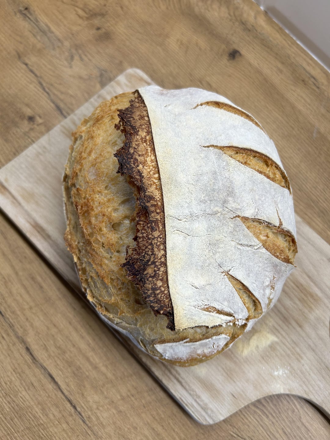 First loaf was ok, but visually didn’t look too appealing. Probably because of spraying water before the baking. But now I’m so proud of this one that I didn’t want to slice it as it looked so nice. It feels so good to learn how to bake nice bread and being able to make it anytime you want (as long as you will start the day before).