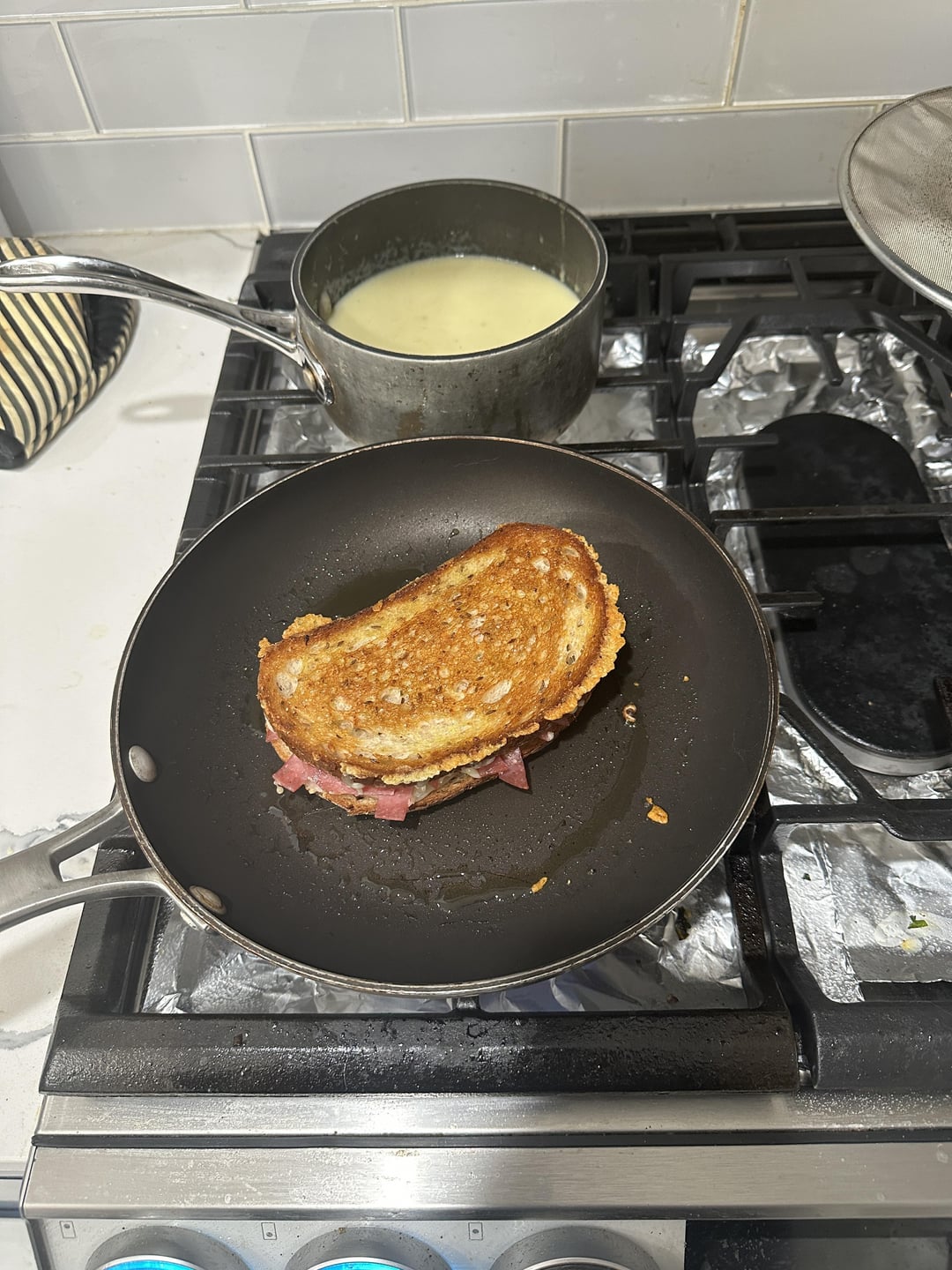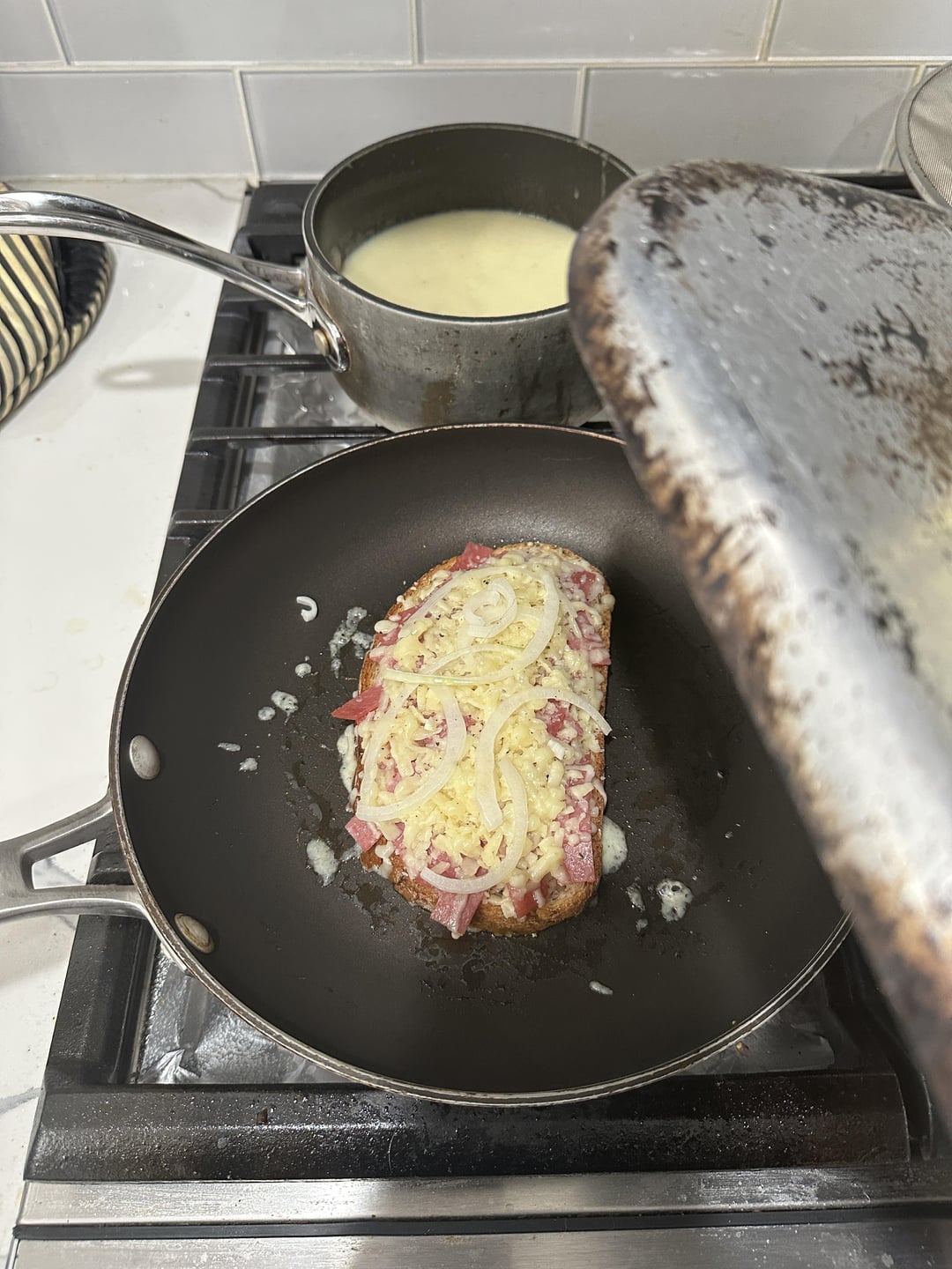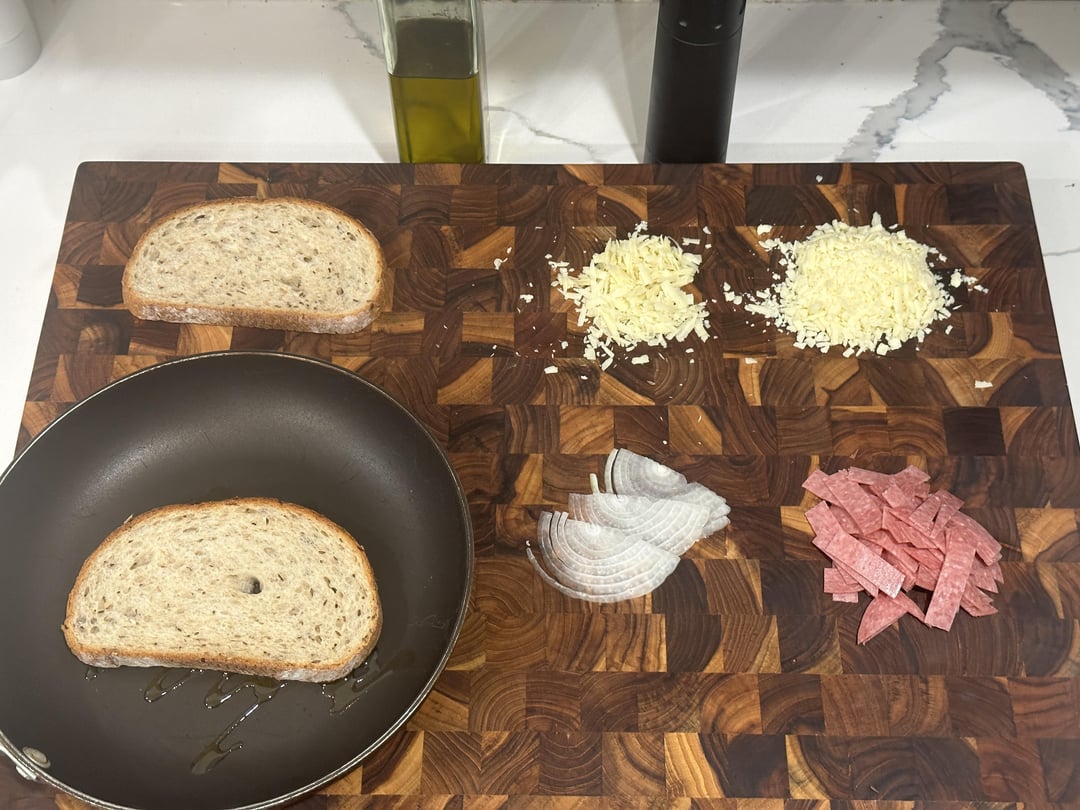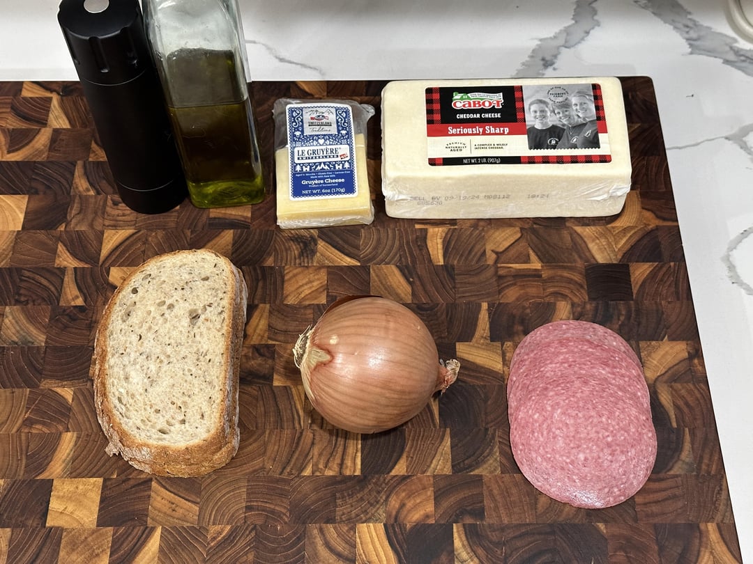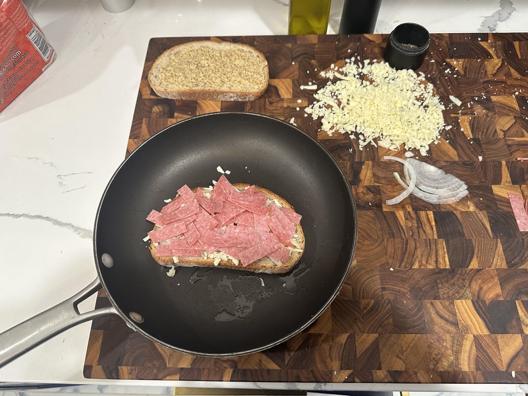 salami, onion, white cheddar and gruyère on rye w/homemade potato and leek soup for dippin’.by callmestinkingwind 2 Comments callmestinkingwind 2 years ago there’s dijon on there too.made the [soup](https://www.reddit.com/r/food/s/r10SoARE3P) yesterday. rattlehead44 2 years ago Damn that looks amazingWrite A CommentYou must be logged in to post a comment.