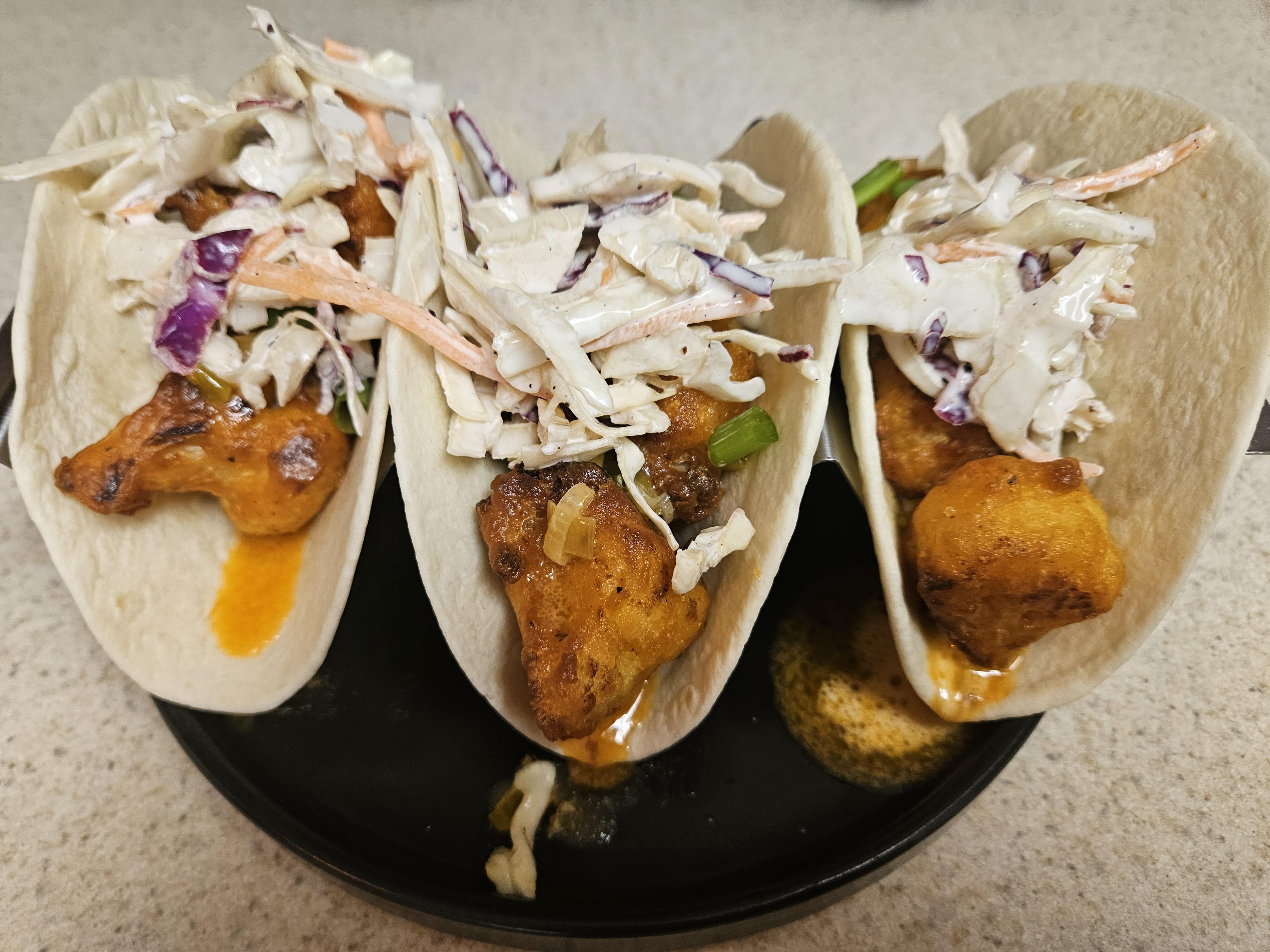 Buffalo Cauliflower Tacos with Tangy Sweet Slaw