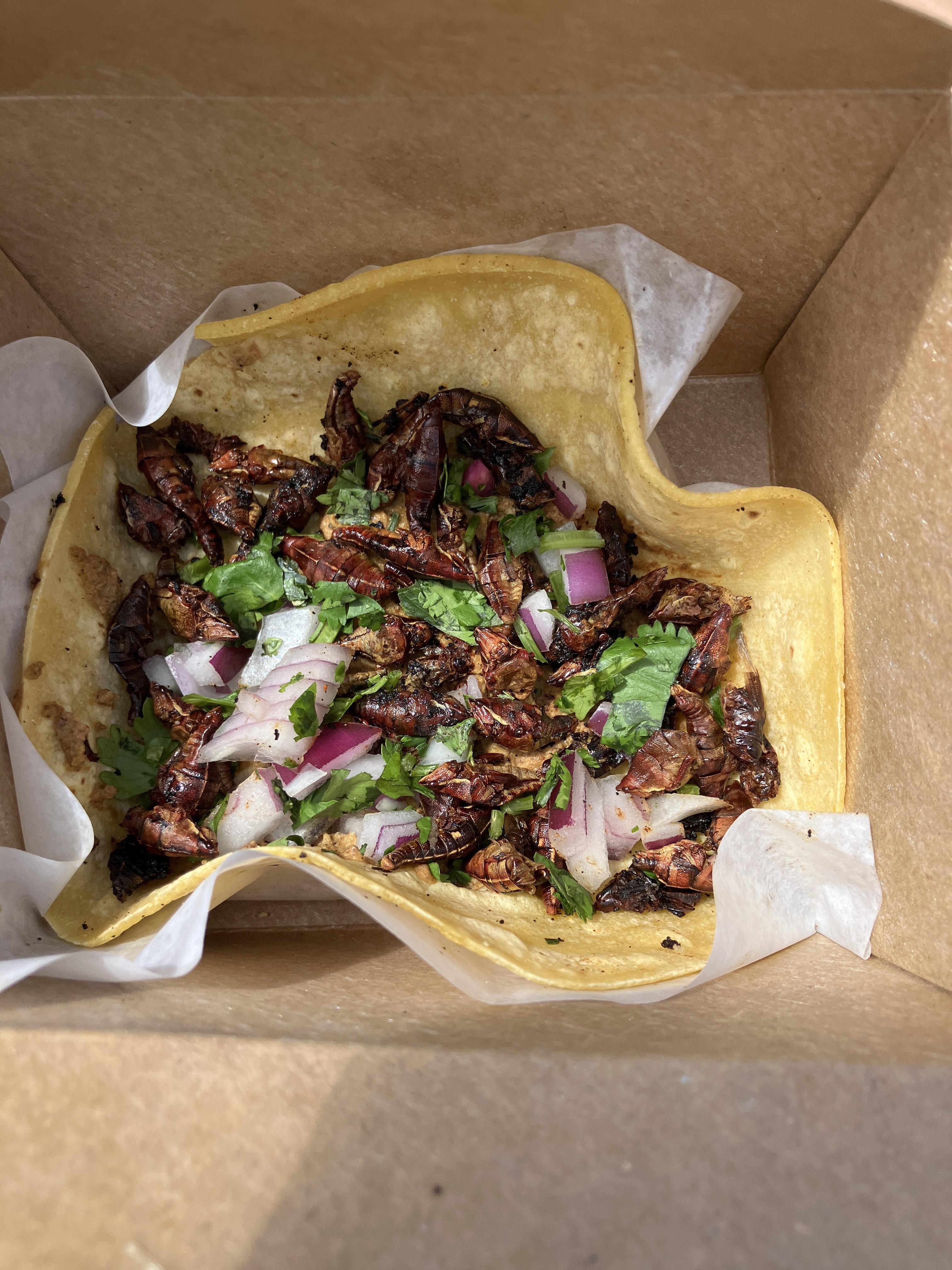 Mmmm I ate roasted crickets in Oaxaca once but never on a taco thing!