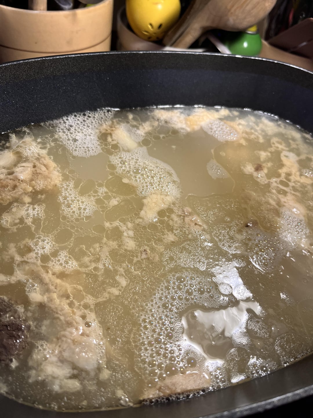 I prefer sweet potato noodles and an ungodly amount of scallions! Second picture is round 1 boiling the bones, third picture is round 2 boiling the bones, it’ll go all night in the crockpot. Round 1 and round 2 will be combined. I’m planning to pressure can the broth tomorrow.