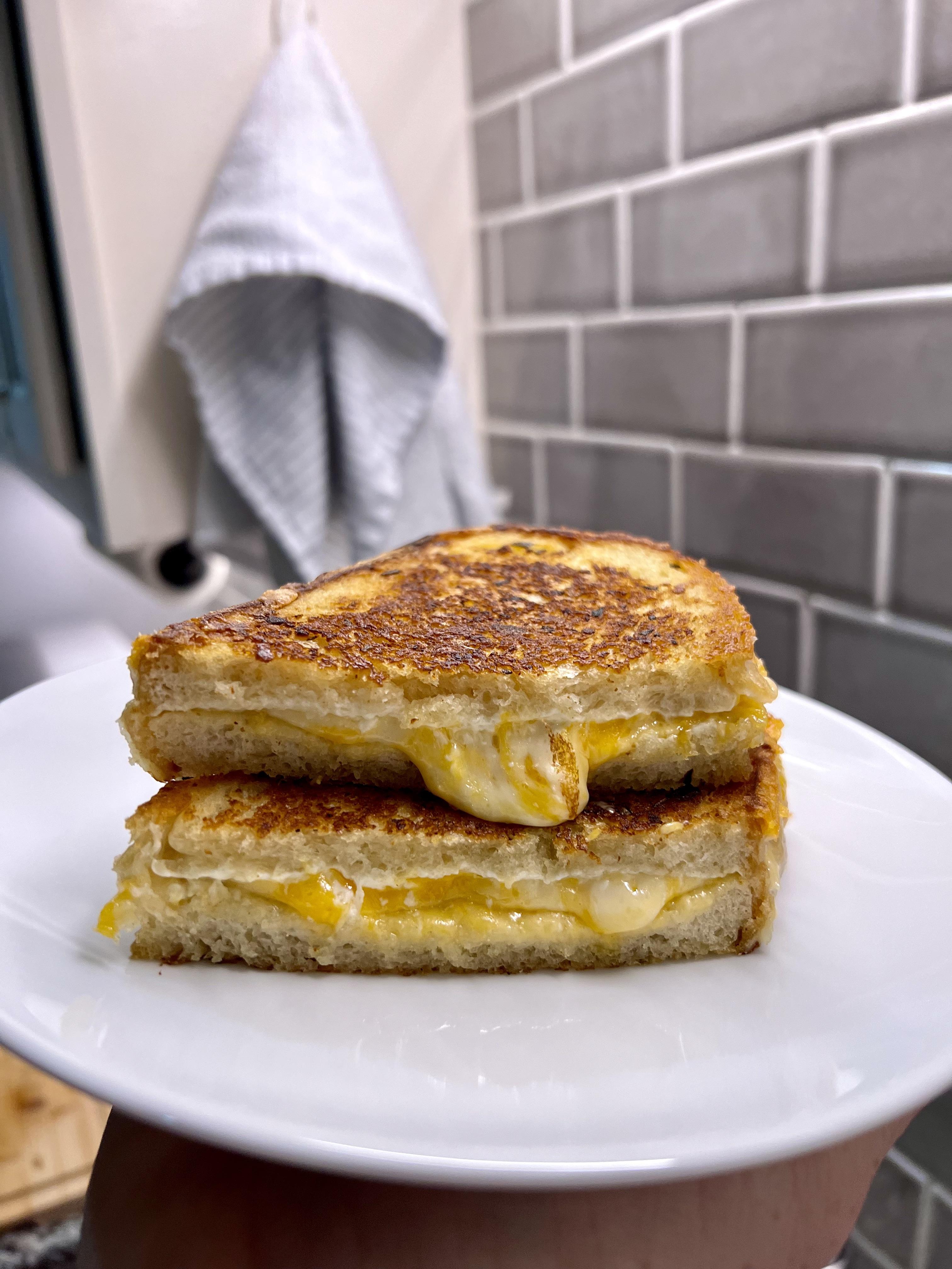 nariekselym 2 years ago Made it with cheddar cheese, Monterey Jack, slice of American and a bit of cream cheese alla Disney. Also used a bit of homemade garlic butter on the outside for frying too.