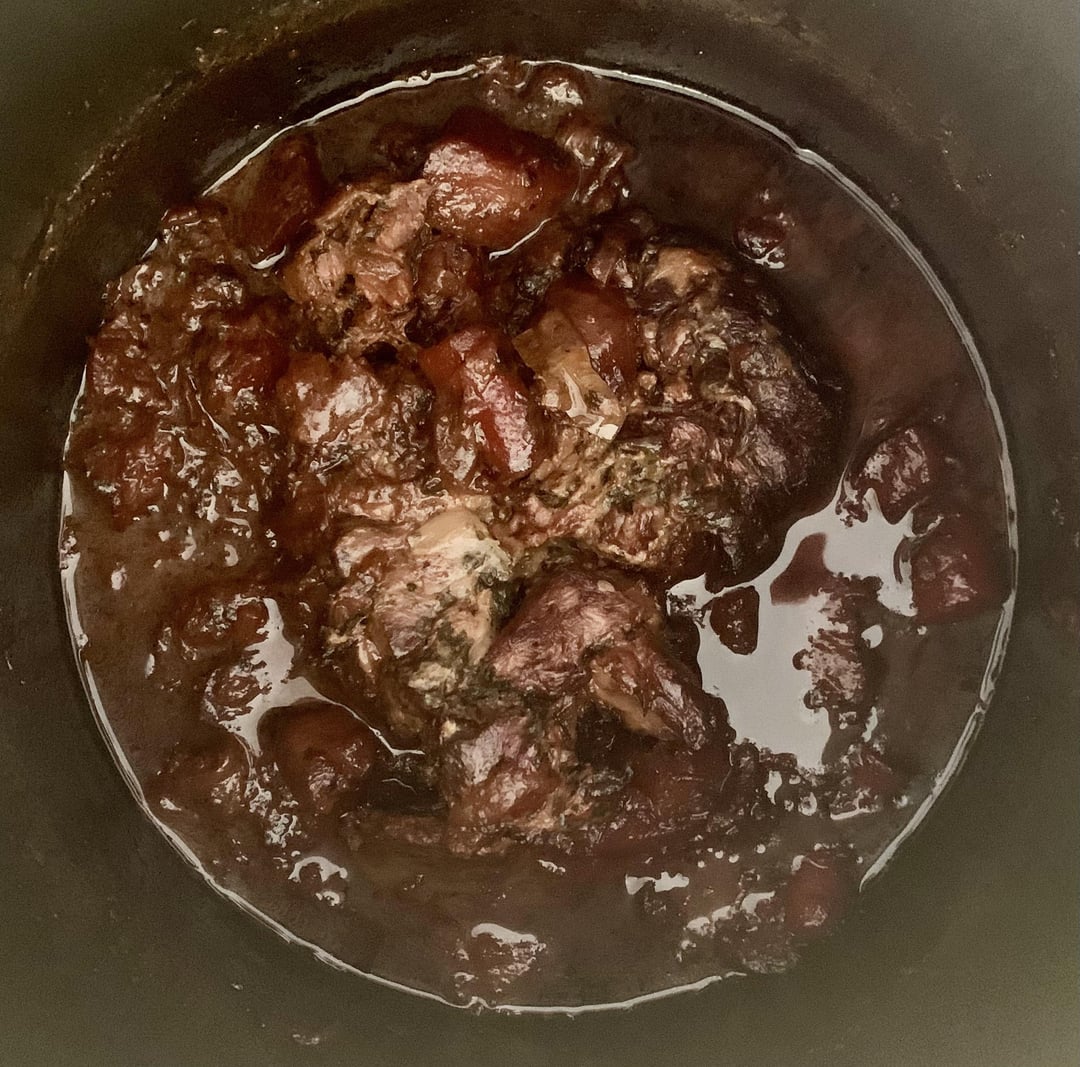 Here’s the recipe for three people. I used a pressure cooker. You buy a slice of leg of lamb. Put a little olive oil in the bottom of the pan and brown the meat on both sides. Deglaze with a little white wine and add the chopped vegetables (4 turnips, 3 carrots, 2 large onions). Brown the vegetables with the meat. Add a little white wine or water to prevent burning. In a dish, mix about 5 tablespoons of fir tree honey and 5 tablespoons of mustard. Stir and add a little water. Pour the mixture into the dish. Add a little salt, pepper and a teaspoon of ras el-hanout (or cumin). In the pressure cooker, add water up to the level of the meat. Leave to cook for 2 hours under pressure.