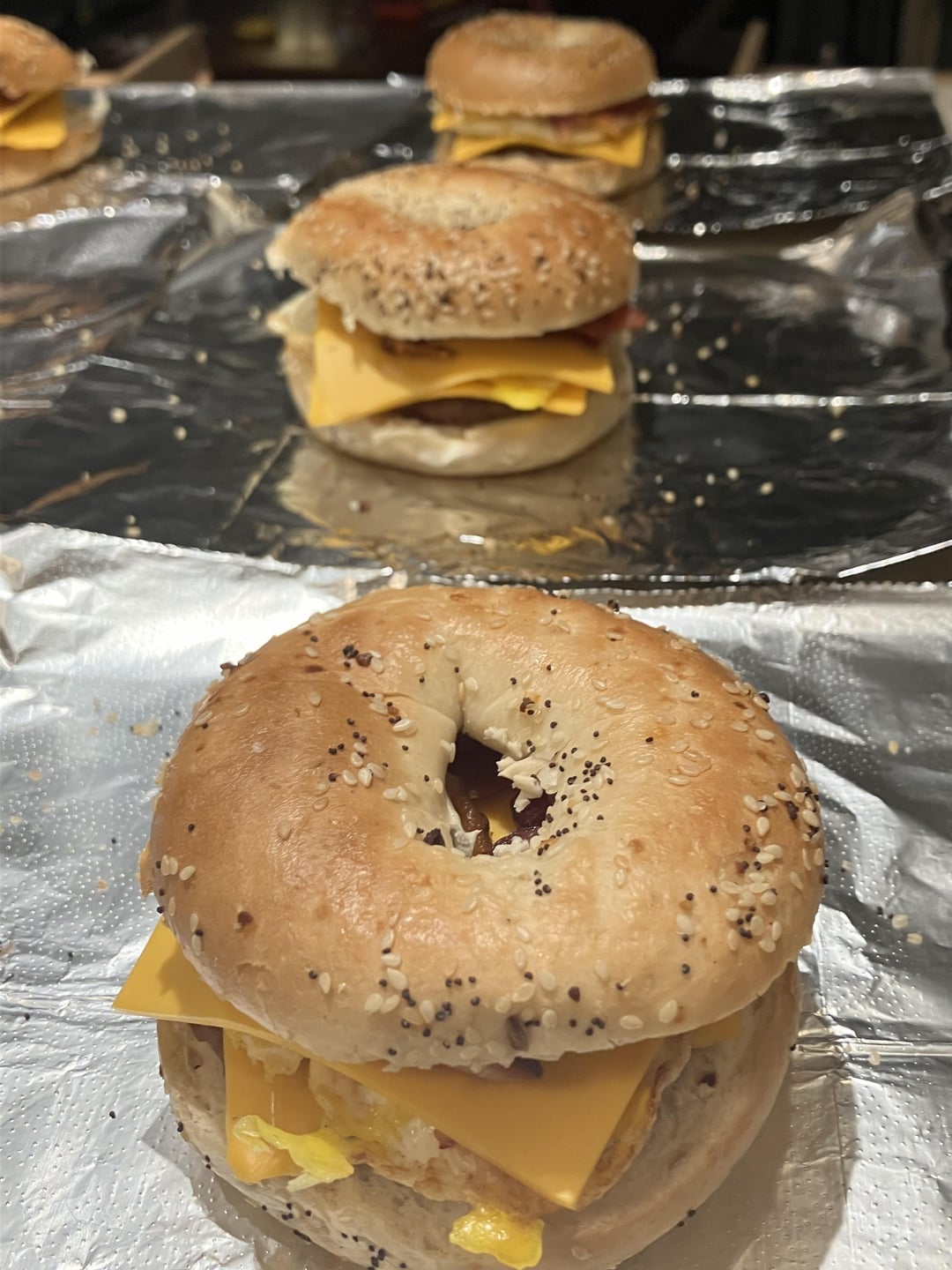 Bacon, sausage, egg and cheese from this mornings tailgate. Premade them last night, heated in oven this morning and then crisped up the outsides at the stadium