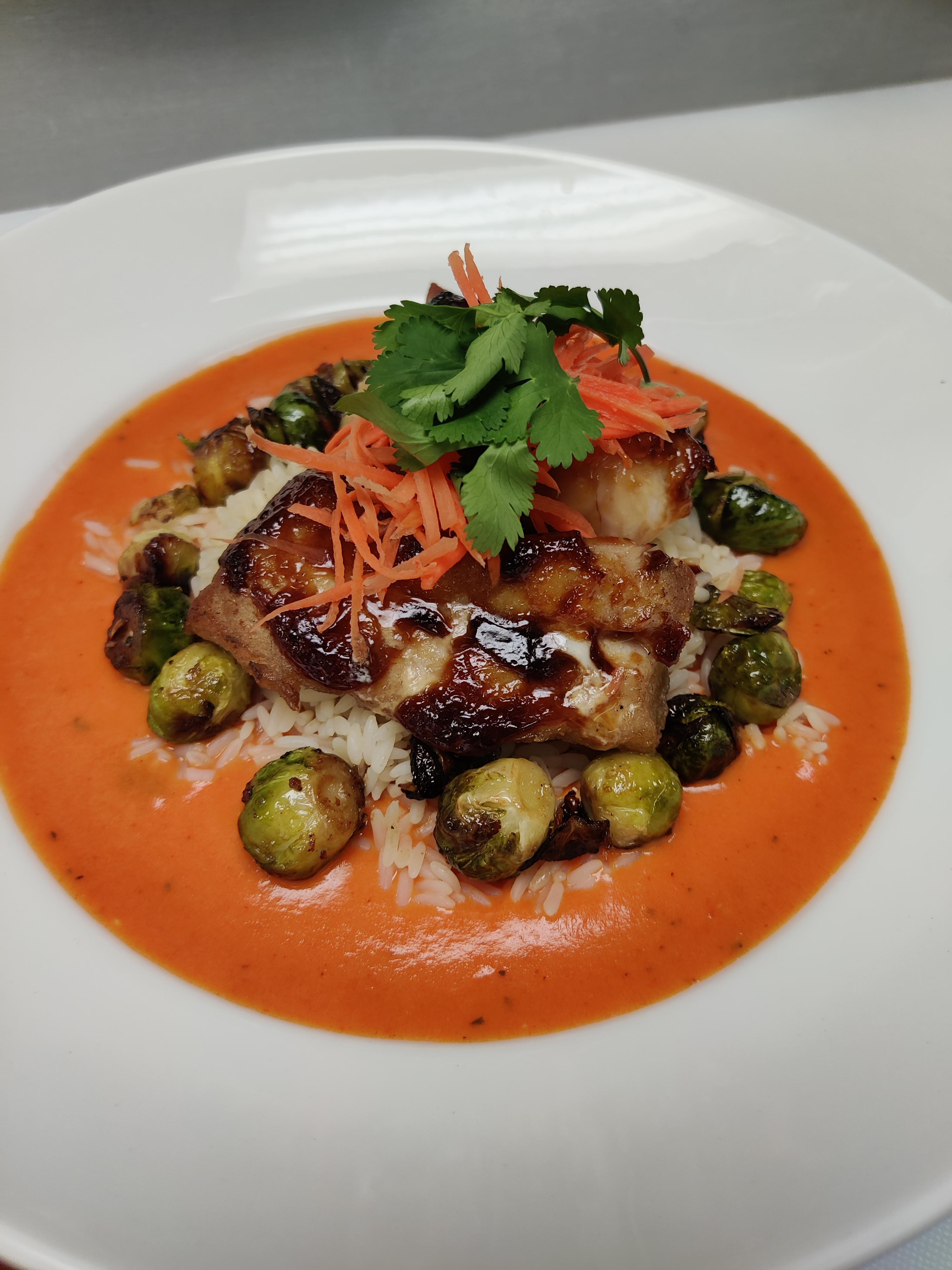 Mahi-mahi – soy bbq glaze, red pepper coulis, brussels, rice by bagelsandb00ks Write A CommentYou must be logged in to post a comment.