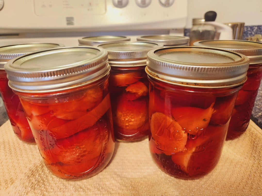 Pressure canned these beets last night. Boiled them for about 20 minutes with stems & roots still on. Cooled & removed the skins. Pressure canned for 30 minutes with fresh water & salt. Allowed the pressure to drop on its own to prevent siphoning, but still ended up with a lot of loss of color this morning, they’re just a pinkish gray.