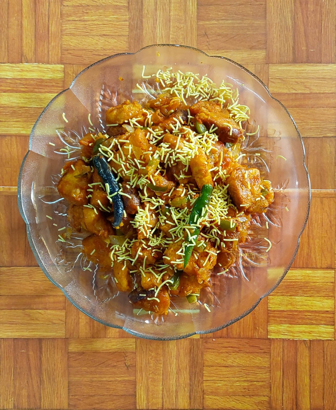 Add the lemon juice and mix well. Finally add the crushed peanuts. Serve hot garnished with bhujia sev.
