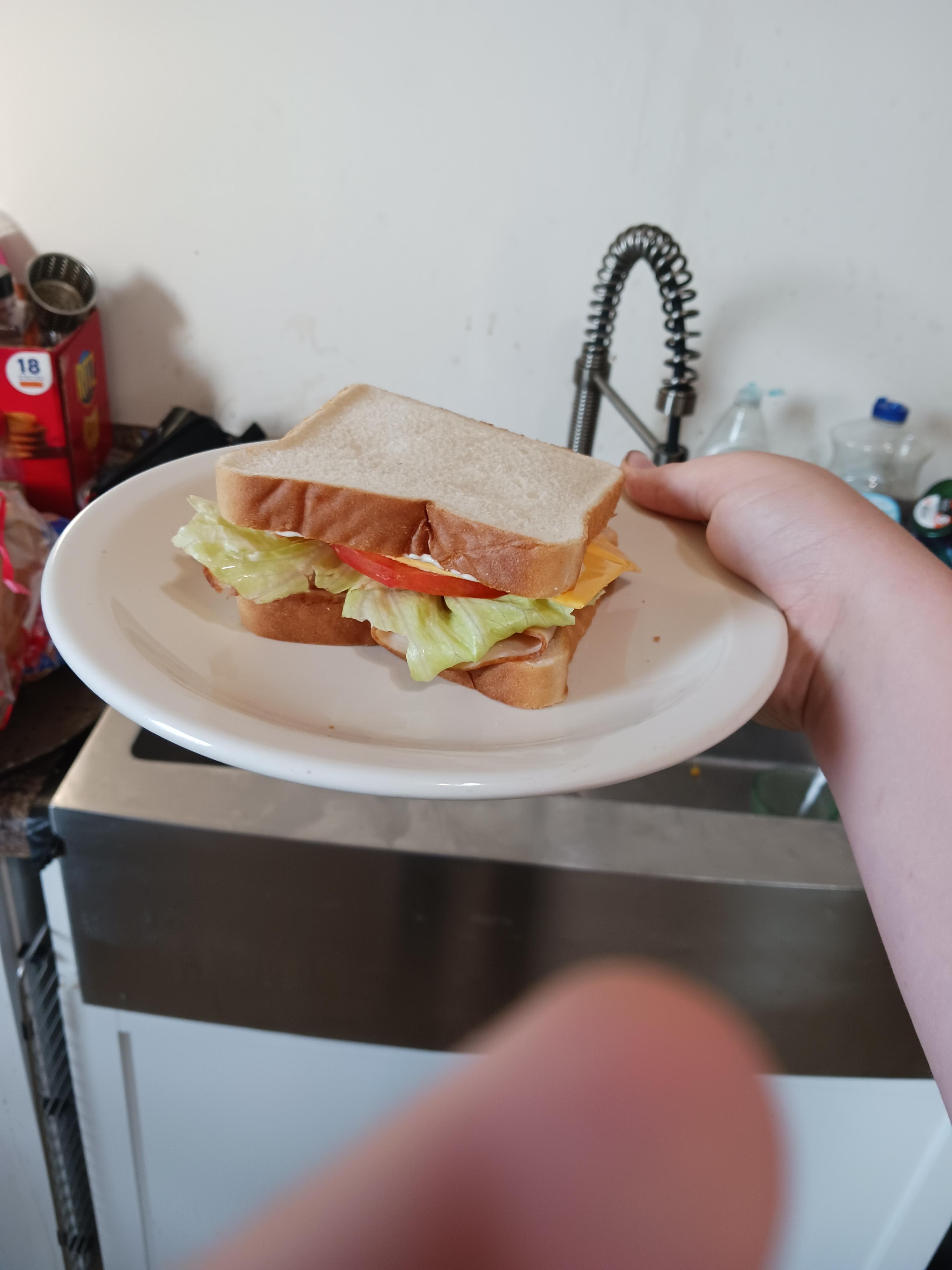 Basic sandwich with turkey lettuce tomatoes mayonnaise and American cheese