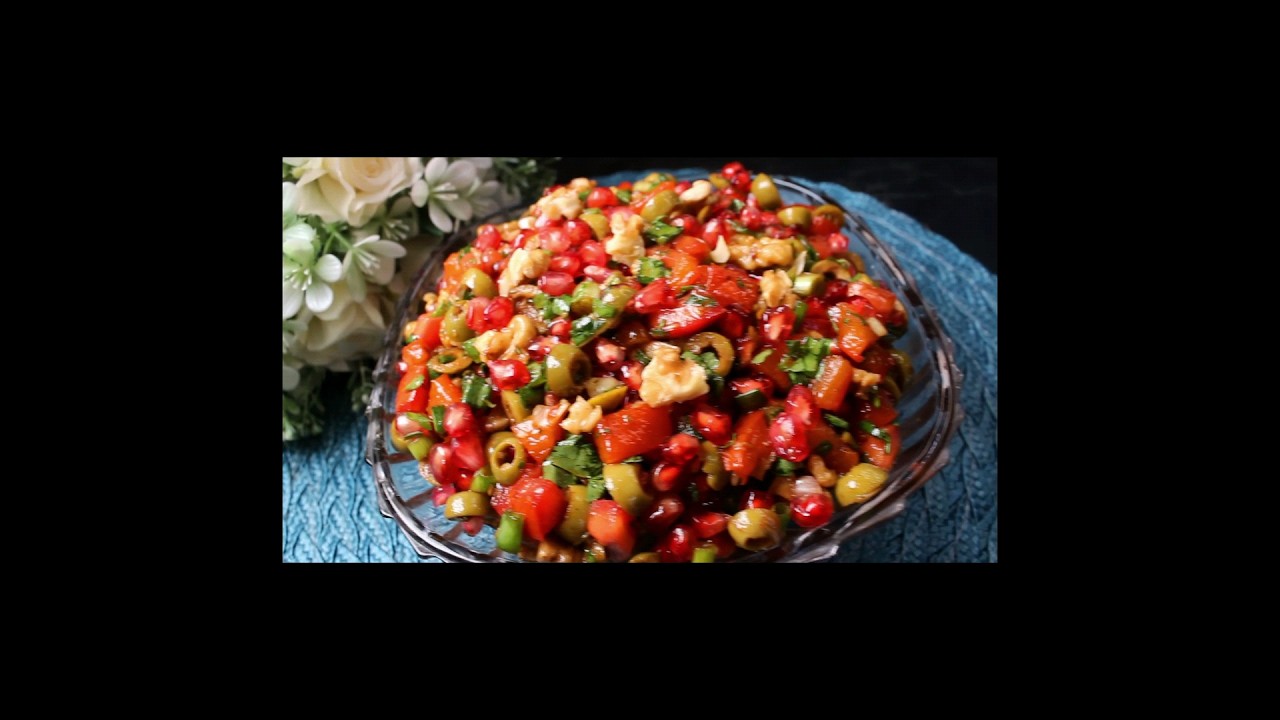 Healthy Green Olive Walnut Salad Recipe With Pomegranate Molasses Syrup Dressing I Roasted Mix Salad