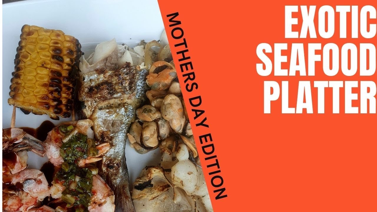 Very delicious exotic seafood platter. Perfect for any mothers day celebration. This recipe is without rice cooked purely on the weber Braai Grill BBQ. Sweet corn was added as no seafood dish that is cooked on the open flame should be with out the yellow goddess vegetable.