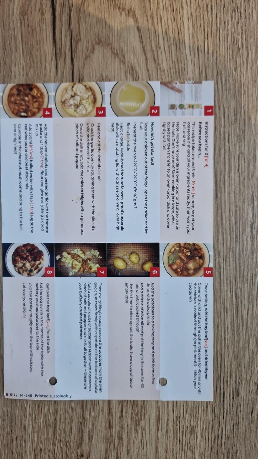 I was making the recipe for four. For the oven it needed 650ml of boiling water. I used half of that as from a previous mistake I learnt I have to reduce the amount of water, not increase it. I read online that I should add any dried herbs for only the last half an hour so I haven’t added the dried thyme yet. But I wasn’t sure what to do with the bay leaves, in at the start or the last 30 mins.