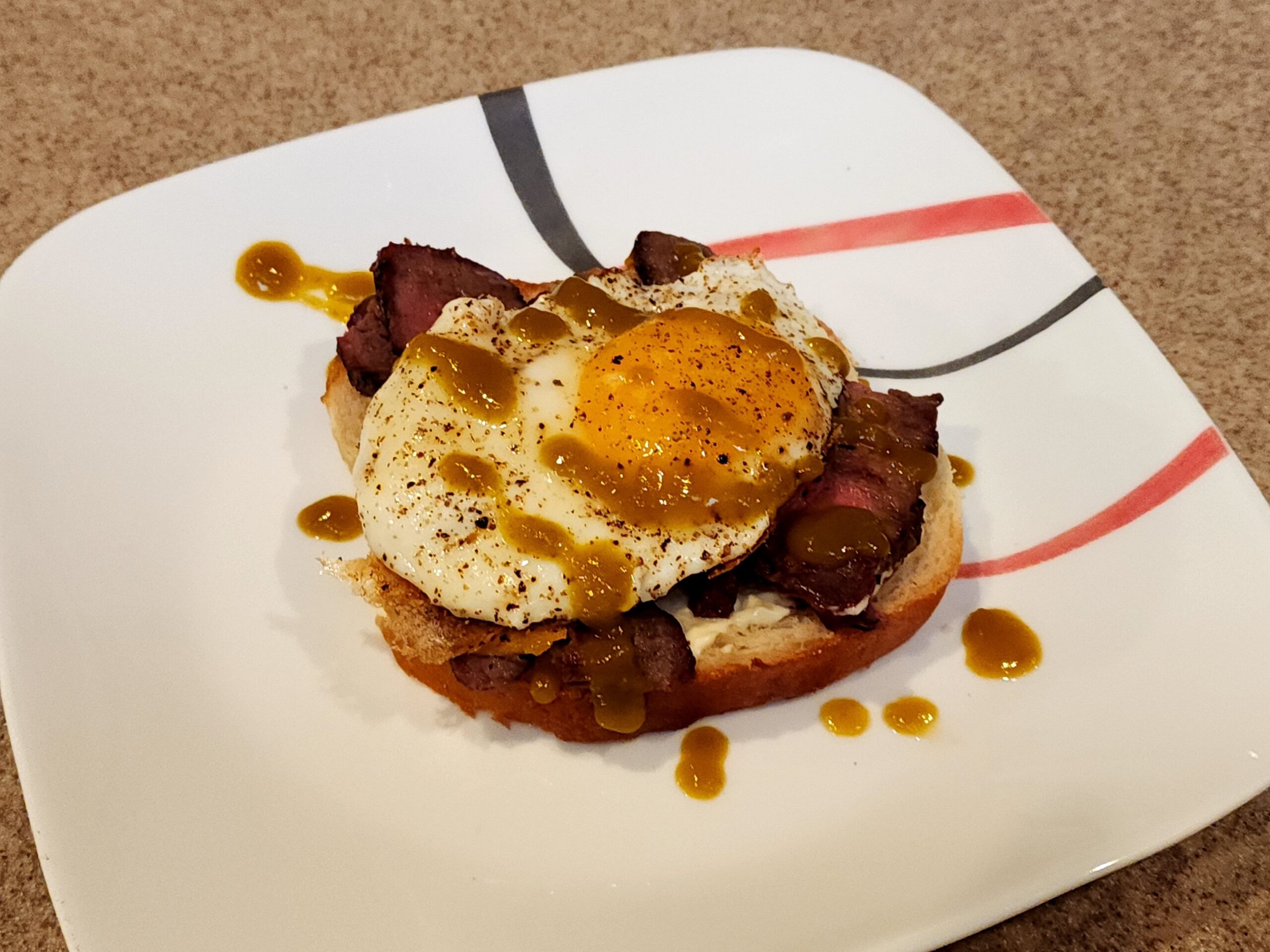 Open face steak and egg sandwich with homemade Italian bread and store bought serrano hot sauceby shadmere 2 Comments SumDumKed 2 years ago No sandwich detected. StarbossTechnology 2 years ago Yellowbird?Write A CommentYou must be logged in to post a comment.