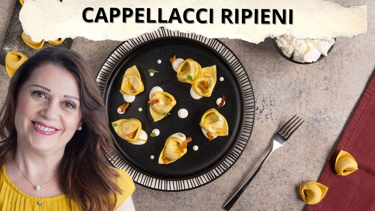 RICETTA: https://www.soniaperonaci.it/cappellacci-ripieni-di-cipolla-pancetta-e-ricotta-con-salsa-al-caprino/