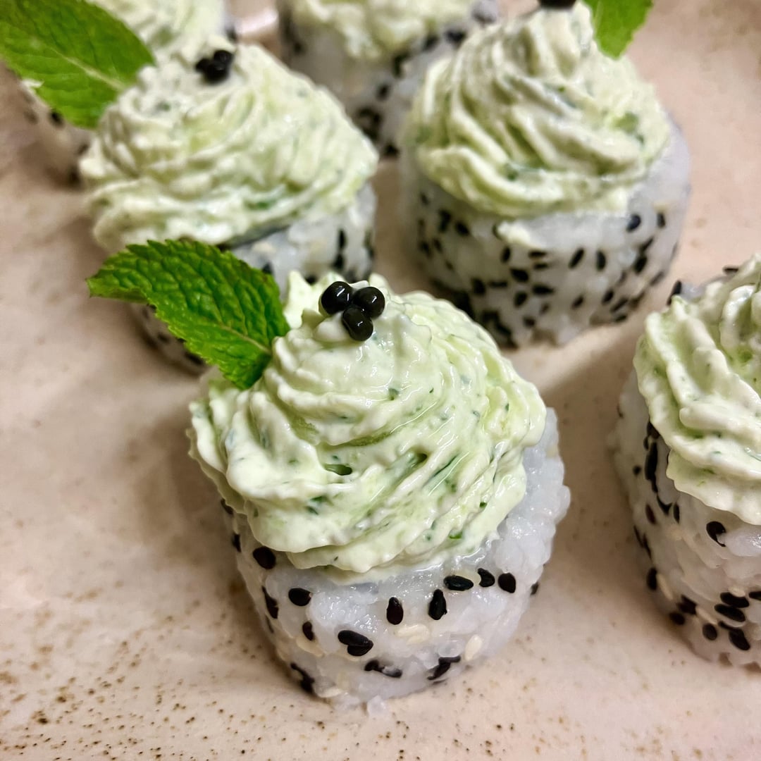 Salmon Uramaki topped with a Cucumber, Mint and Dill Mousse by Living-Airline9487 Write A CommentYou must be logged in to post a comment.