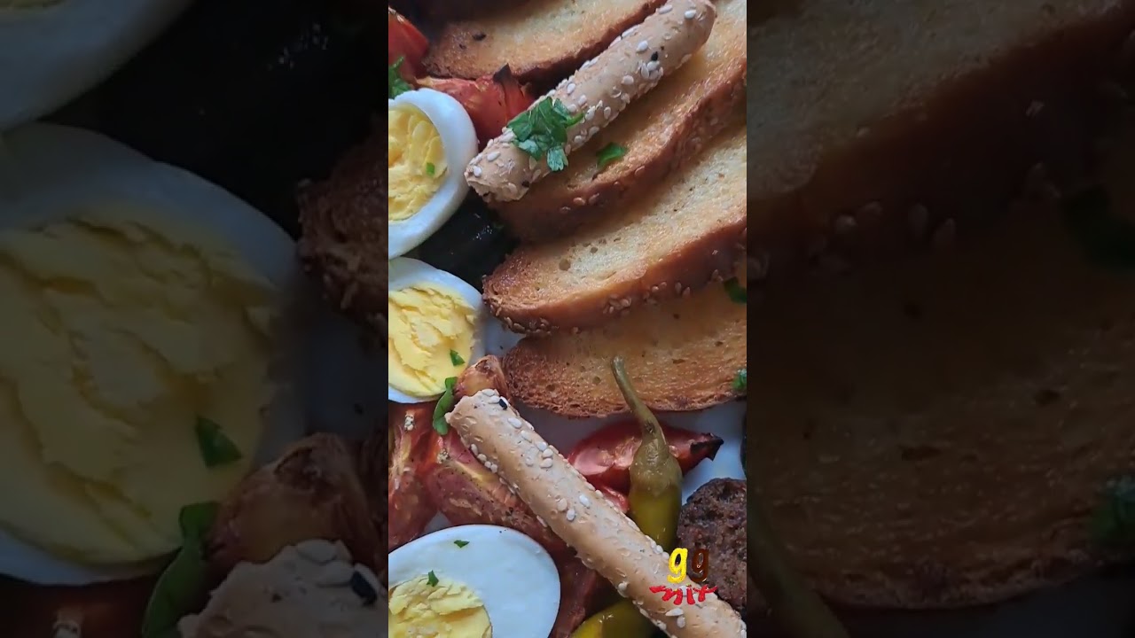 Imagine waking up to this platter, the smell of spicy basturma, smokey loukaniko, caramelised sweet tomatoes, charred salty halloumi, eggy eggs (farts 😆) freshly toasted koulouri with a sesame crust and cucumber, olives, chilli’s and sesame breadsticks which you can’t smell but add freshness, bitterness, heat and crunch.