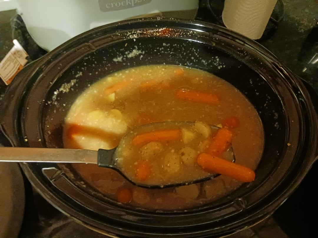Good thought. Your timing is off though on the potatoes and carrots. They do not need 8 hours. But this is how we learn by trial and error. Gonna taste good regardless.