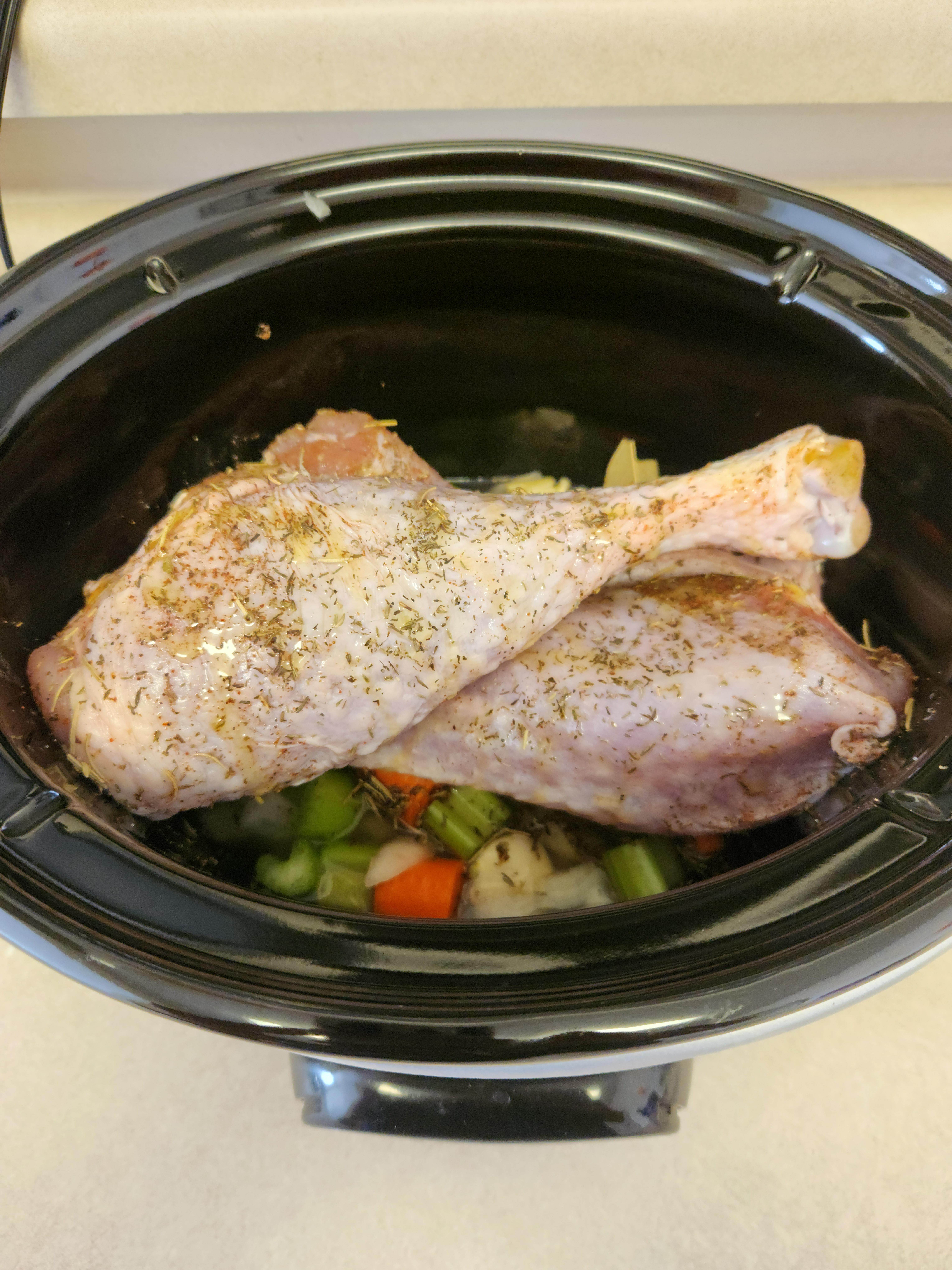 A couple turkey legs for my wife and I. 1/2 tsp salt 1/2 tsp pepper 1/2 tsp paprika 1 tsp thyme 1 tsp rosemary 1 tsp oregano 1 tbsp olive oil 1 cup chicken broth Carrots, onion, and celery. High / 6 hours by BinjimanT 3 Comments Expensive_Ebb6309 2 years ago Awesome. Bon appetite Artistic_Exam7676 2 years ago Happy Thanksgiving 🍁🍽 Mandykins1 2 years ago That looks great! Have a lovely Thanksgiving!Write A CommentYou must be logged in to post a comment.
