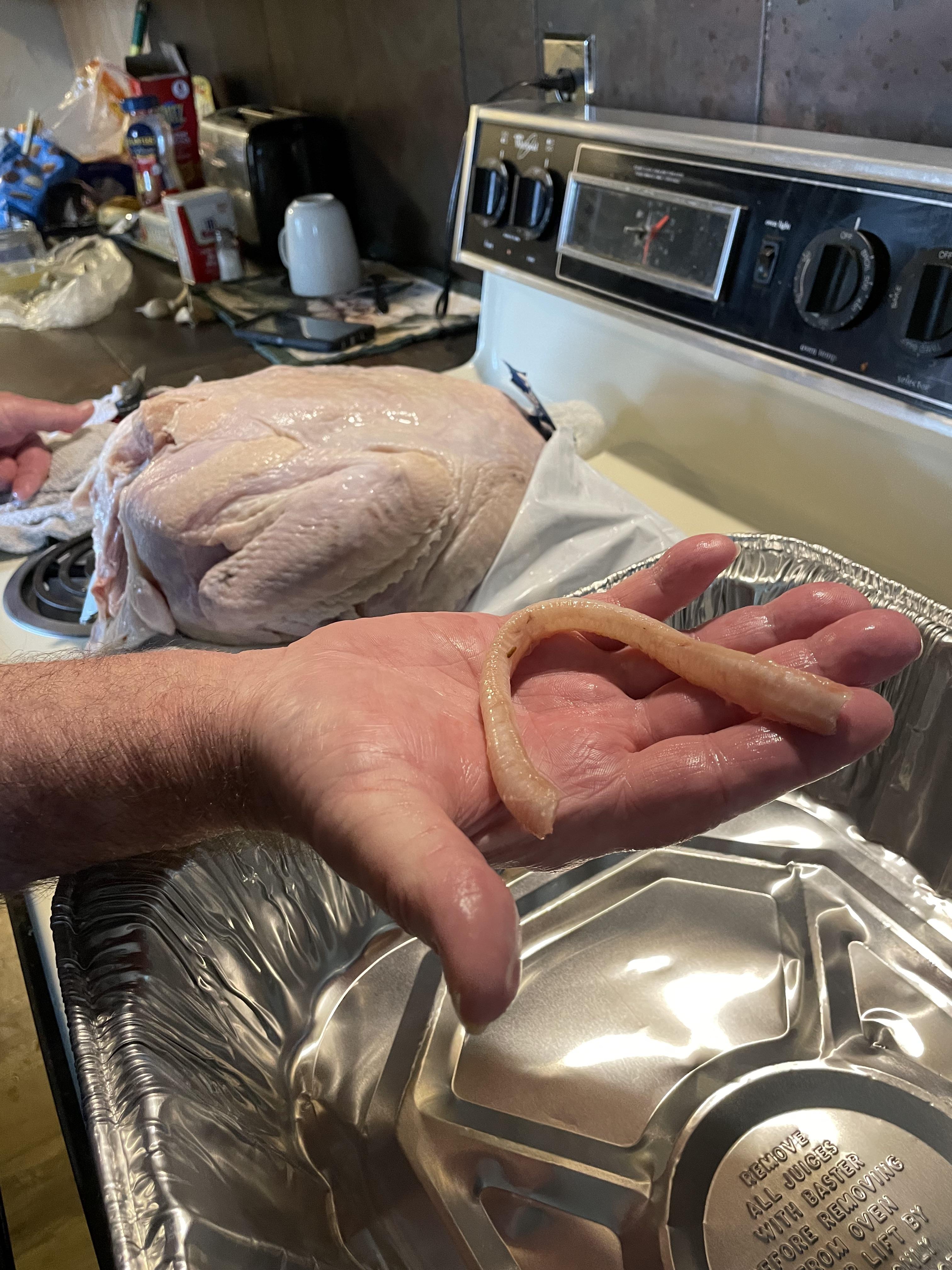 It’s hollow like a straw! Never saw one like this before ever in my 30 years of thanksgivings. Very slippery and gross!!!!! by Maleficent-Syrup9881 5 Comments kaitlandia_ 2 years ago Pretty sure that’s a gizzard or a turkey neck… Rock_Angel7 2 years ago It’s the trachea to the lungs. They probably didn’t remove all the insides properly. [deleted] 2 years ago [removed] VIadTheInhaIer 2 years ago Thats turkey dick Cat_Lover259 2 years ago So glad I’m a vegetarian 🤮Write A CommentYou must be logged in to post a comment.