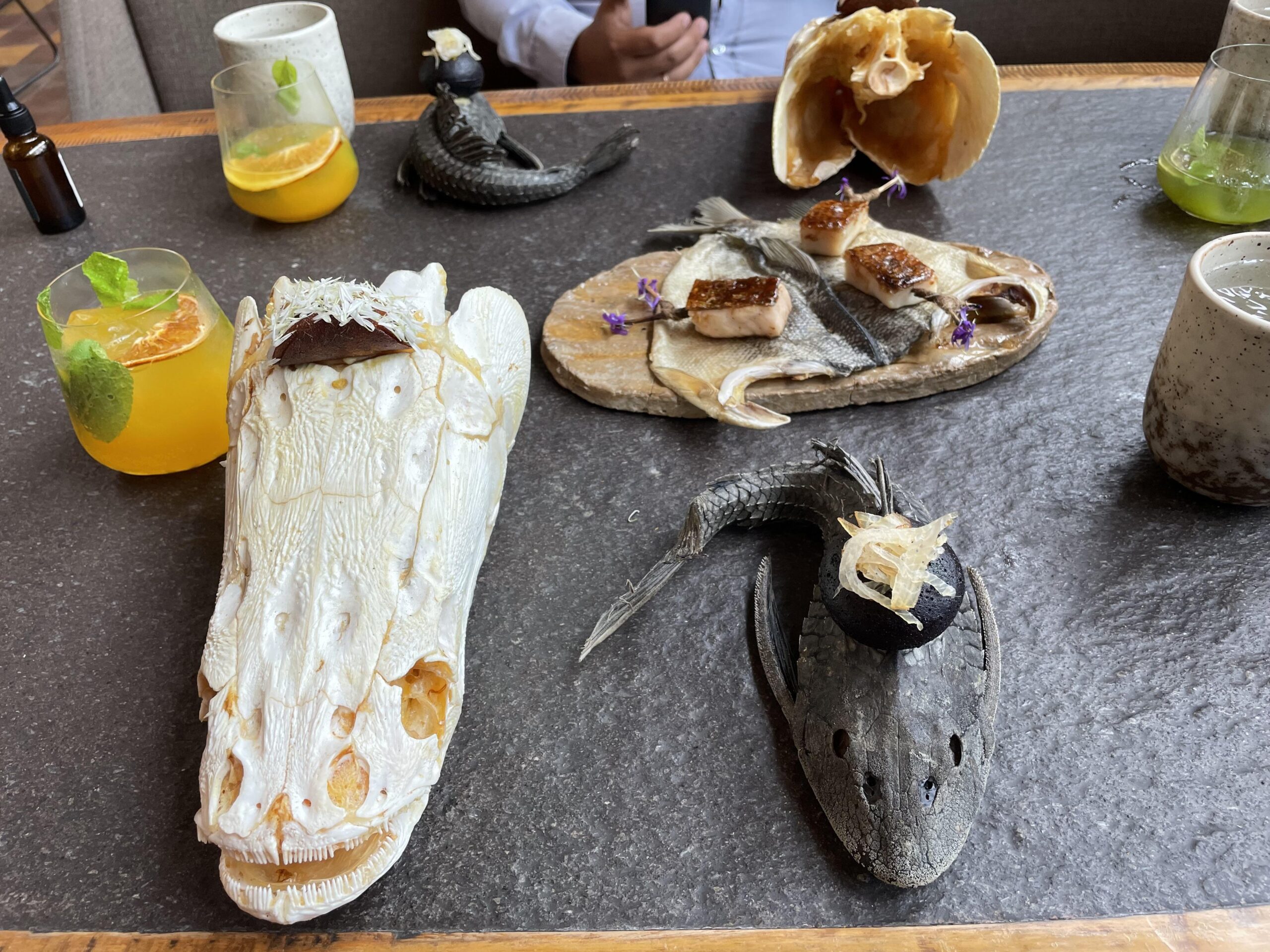 So this a small taco served on some kind of large fish skull. Another treat is served on the shell of a strange creature. I ain’t mad. It was an amazing meal.