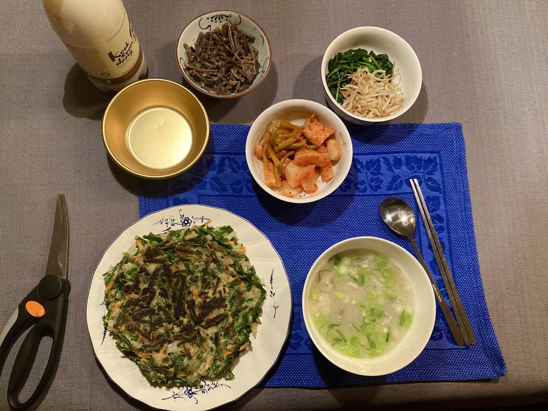 Last picture is my end of day feast with my first time trying 고사리나물 (very tasty) and 도가니탕 that I bought frozen. Other than that: 부추전, 나물 and 총각김치 that I made ~2months ago.