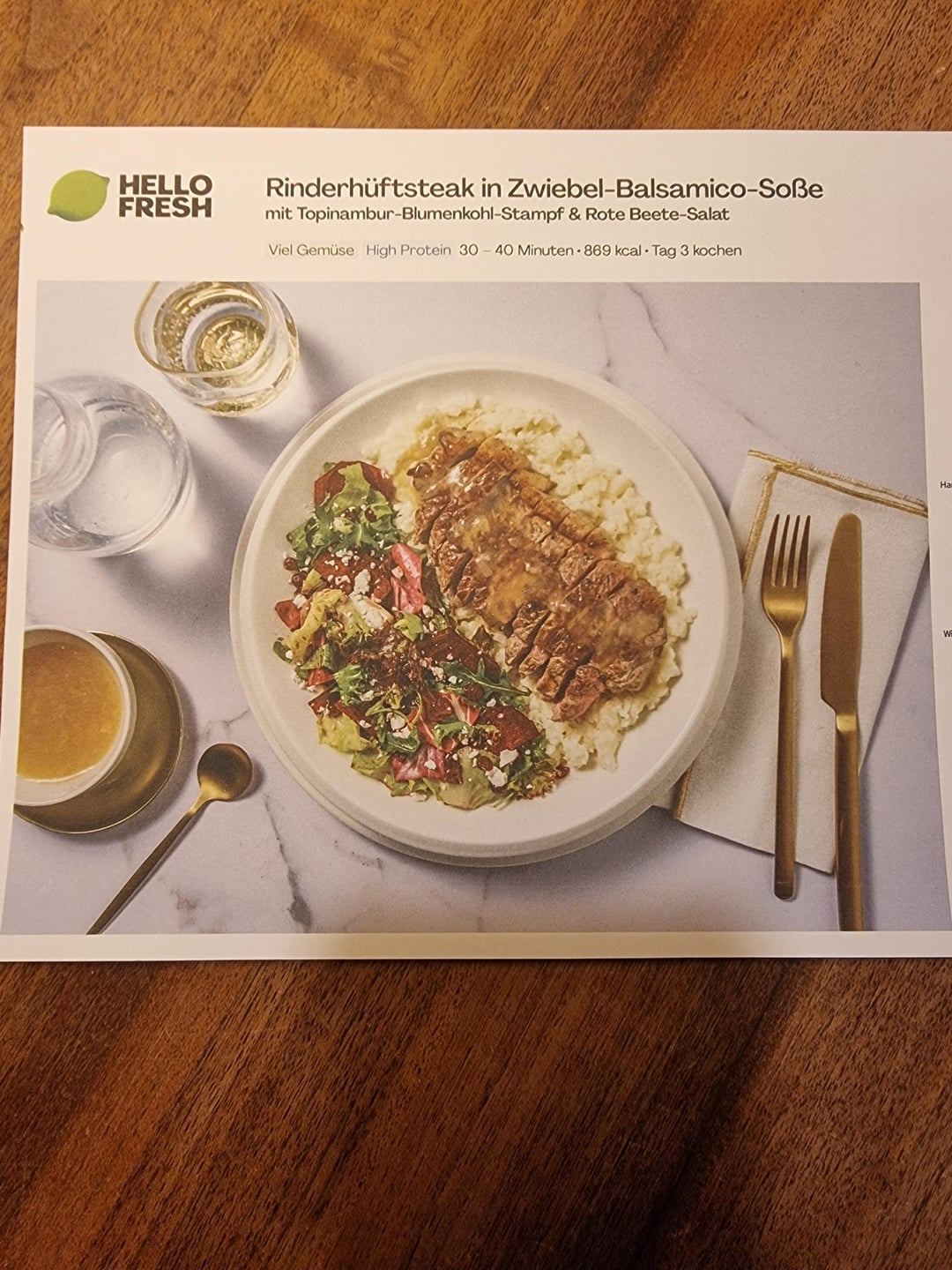 Spread the cauliflower mash on plates, arrange the steak and top with the sauce. Serve the salad next to it.