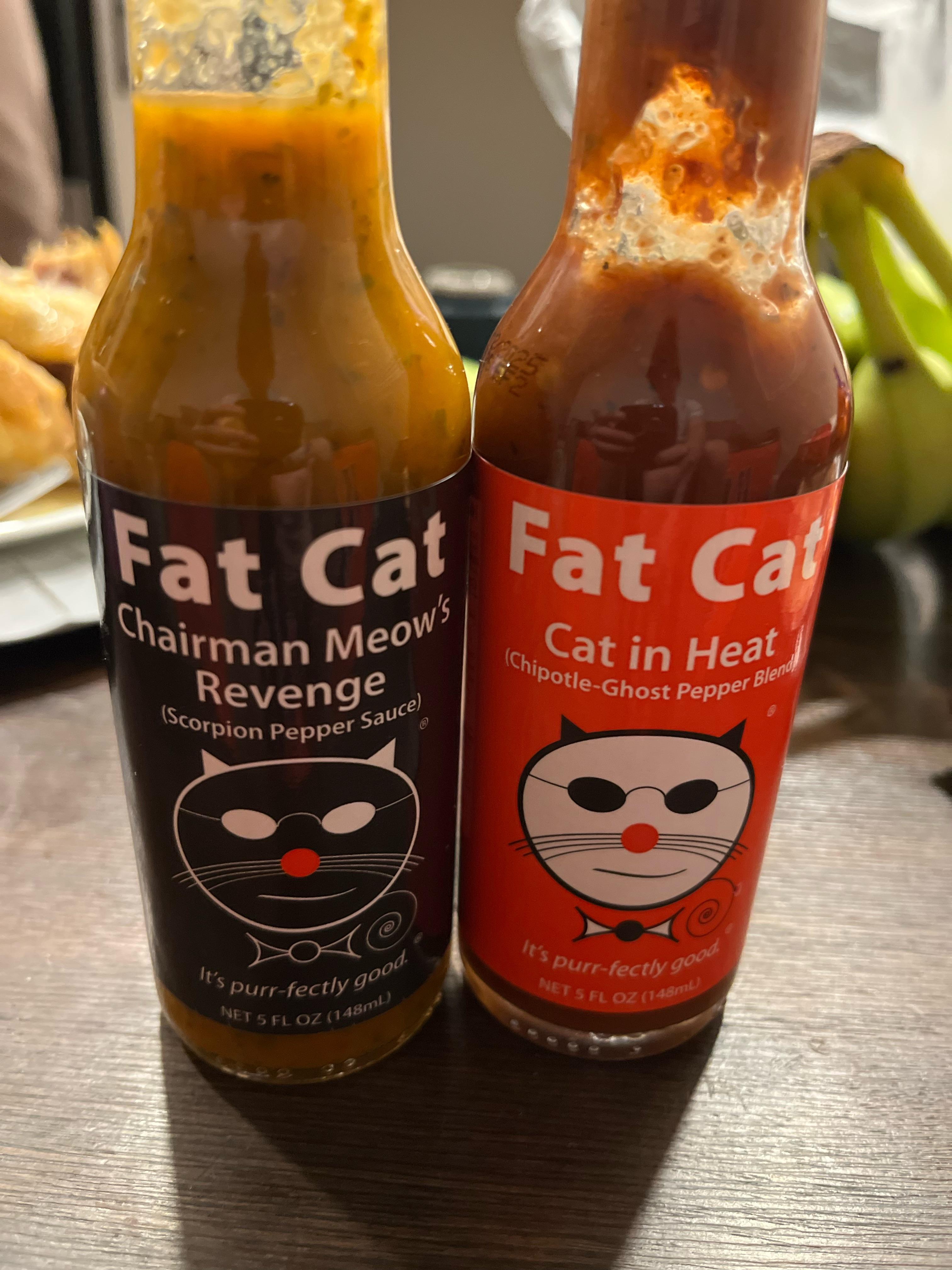 I enjoyed both of these, but I *really* liked Chairman Meow’s Revenge. I find it’s a good sauce for Mexican dishes, because it has some cilantro and lime in there. Not super hot, even though it’s labeled as a scorpion sauce. I think scorpion peppers are almost last on the ingredient list, so there probably isn’t a ton in there.