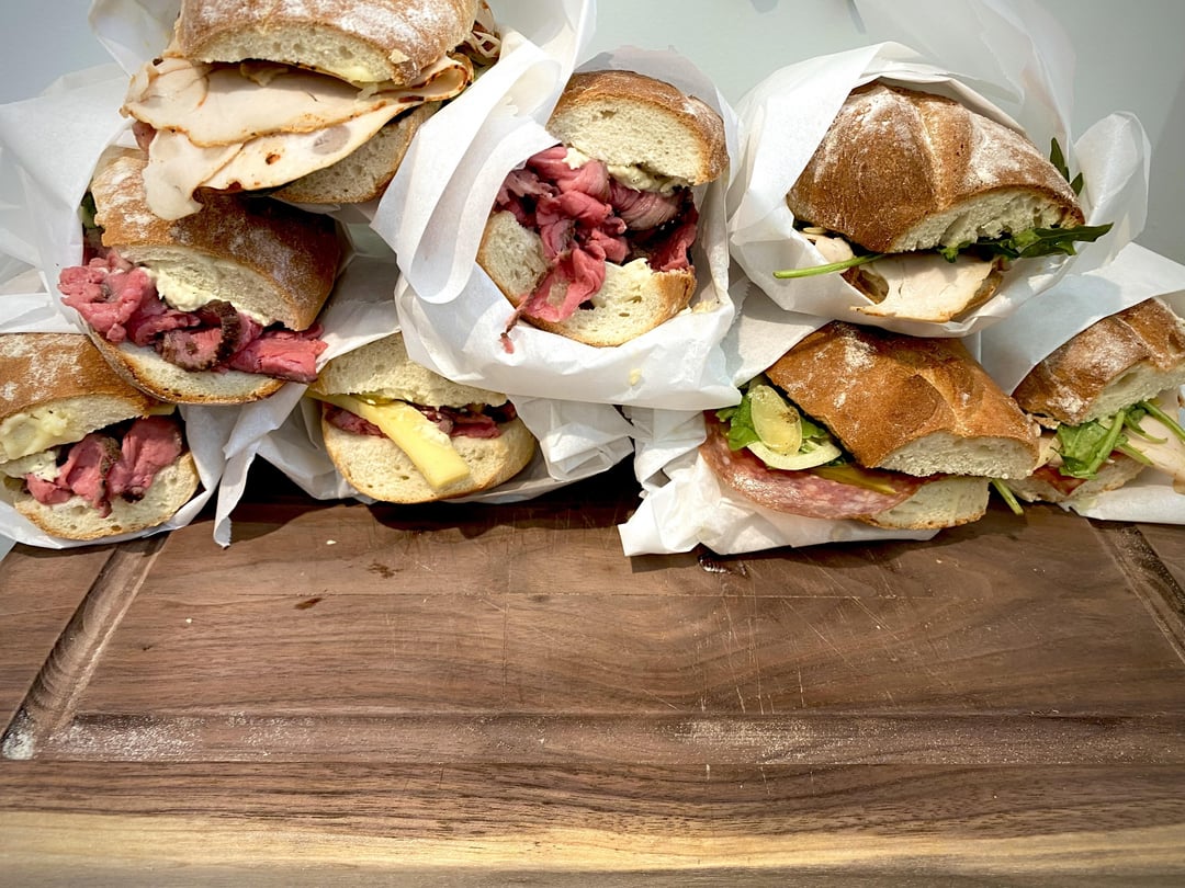 7: Game day hoagies on homemade wheat flutes (Roast beef & manchego, salami, turkey)