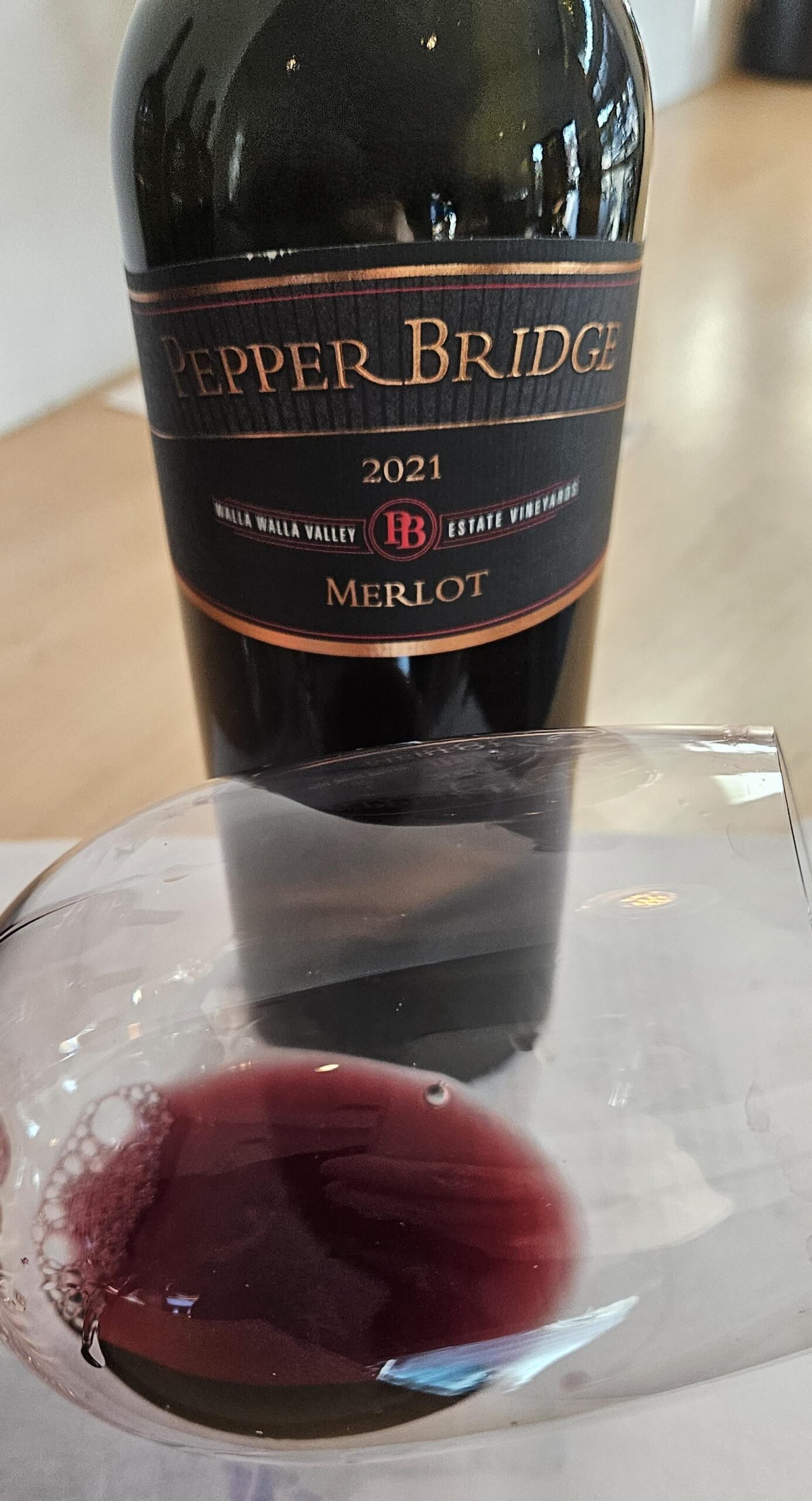 odedi1 2 years ago Pepper Bridge Winery Walla Walla Valley Merlot 2021, Washington StateRuby and color with a wide reddish rim and medium plus intensity.Fruity nose with light oak, chocolates and coffee notes.Medium plus in body with medium acidity.Dry on the palate with plums, black cherries, currants, oak, coffee, light vanilla, spices, dark chocolates, earth and peppercorn.Medium plus on the finish with fine grained tannins and tangy raspberries.This Merlot from Walla Walla Valley is starting to drink nicely now, although still young. Fruit forward and elegant, with nice complexity.Easy drinking and good by itself or with food.Would be nice to try it again in 3 years. Will continue to age nicely in the next 7 years.A blend of 82% Merlot, 9% Malbec and 9% Cabernet Franc. Aged in (38% new) French Oak barrels.14.5% alcohol by volume.90 points.$55.