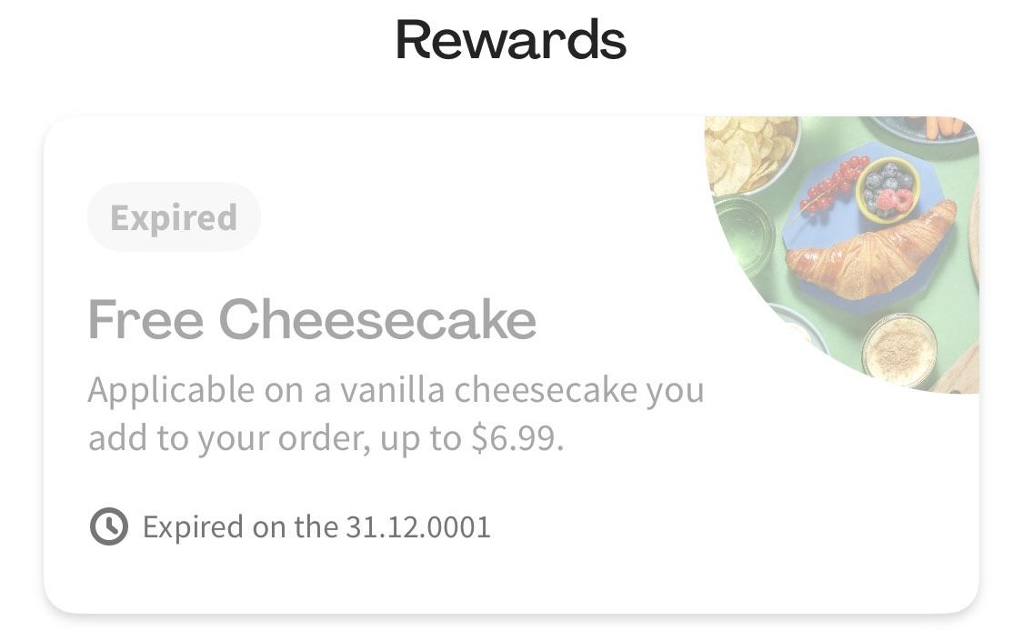 I can’t get my free cheesecake because the coupon expired in the year 1by DingoOfDeath Write A CommentYou must be logged in to post a comment.