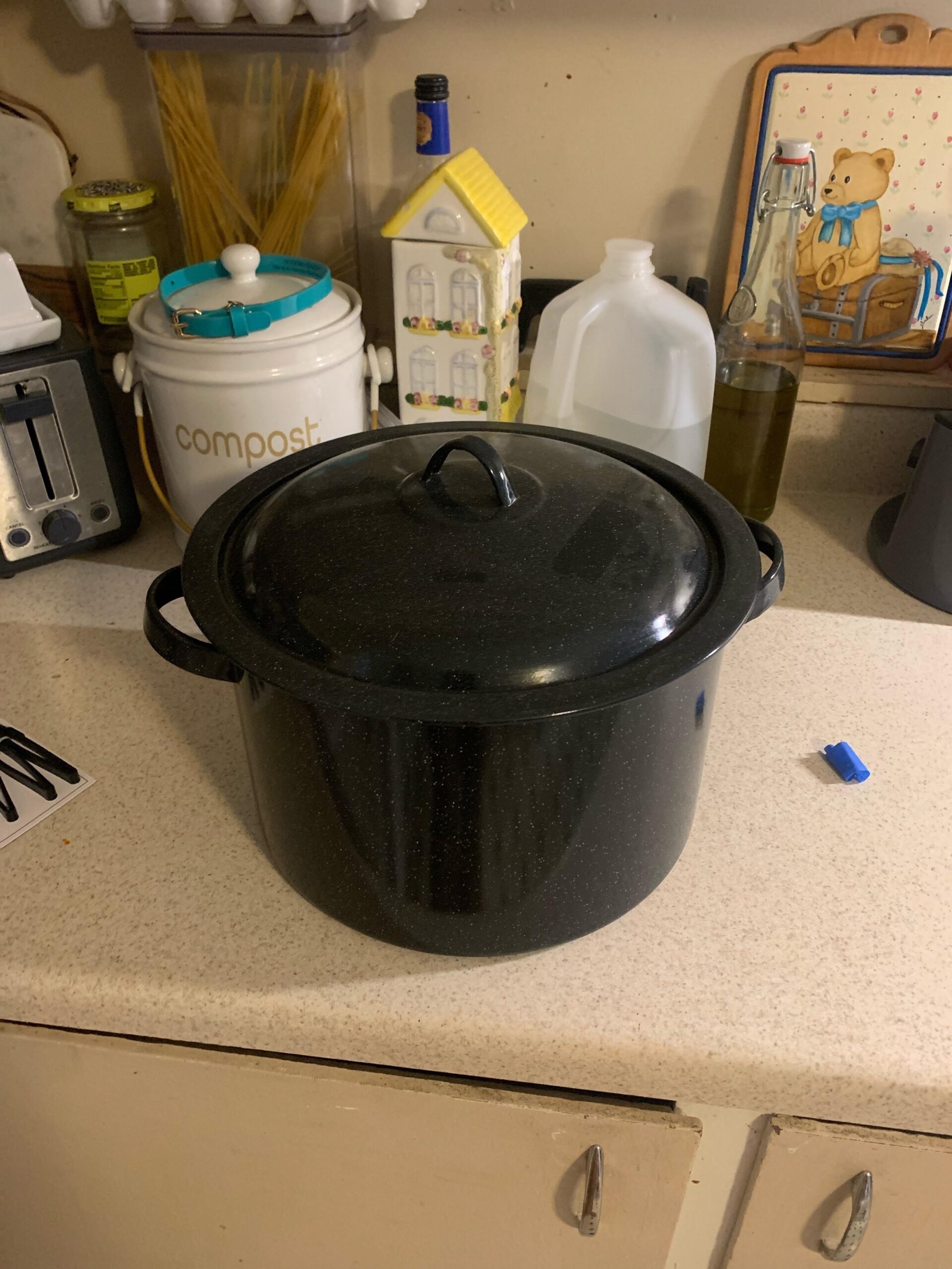 I want to start canning I bought jars a utensil set and a silicone canning rack. I have this pot I got at an estate sale and I’m hoping it will work but I don’t want to try it without asking first