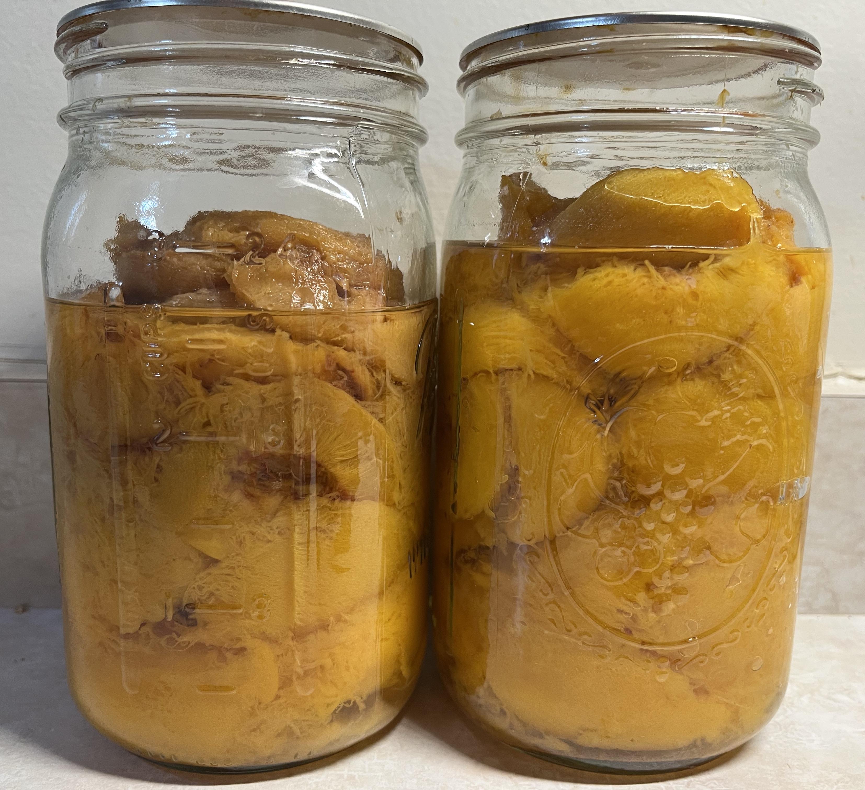 Yellow peaches, canned according to the recipe in 12th edition Better Homes and Gardens cookbook. I had a heck of a time with these quart jars and siphoning, but this one on the left is just gross looking and kind of brown. I’m going to throw it away, but wanted to ask if anyone could give any advice on what happened? It’s still sealed but not as tight as the others (makes a thunk instead of a nice ting when I tap it with a fingernail).