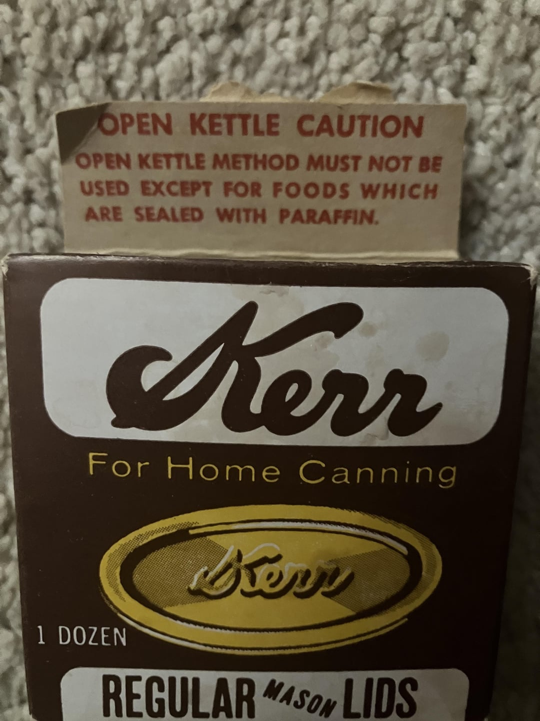 We often pick up canning supplies from estate sales. This was an unopened box of lids amongst other items. When I saw the warning “OPEN KETTLE CAUTION Open kettle method not be used except for foods which are sealed with paraffin” I wondered how old this box was. Any ideas when this practice would be no longer recommended?