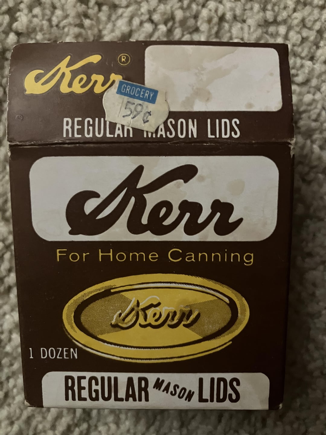Just going by the store price I would put them at the very minimum of 40 years old. I was buying new lids in the early ’90s for just under $1.00 a dozen, and that wasn’t at any discount at all, far from it. My closest/best resource was a local farm & feed store.