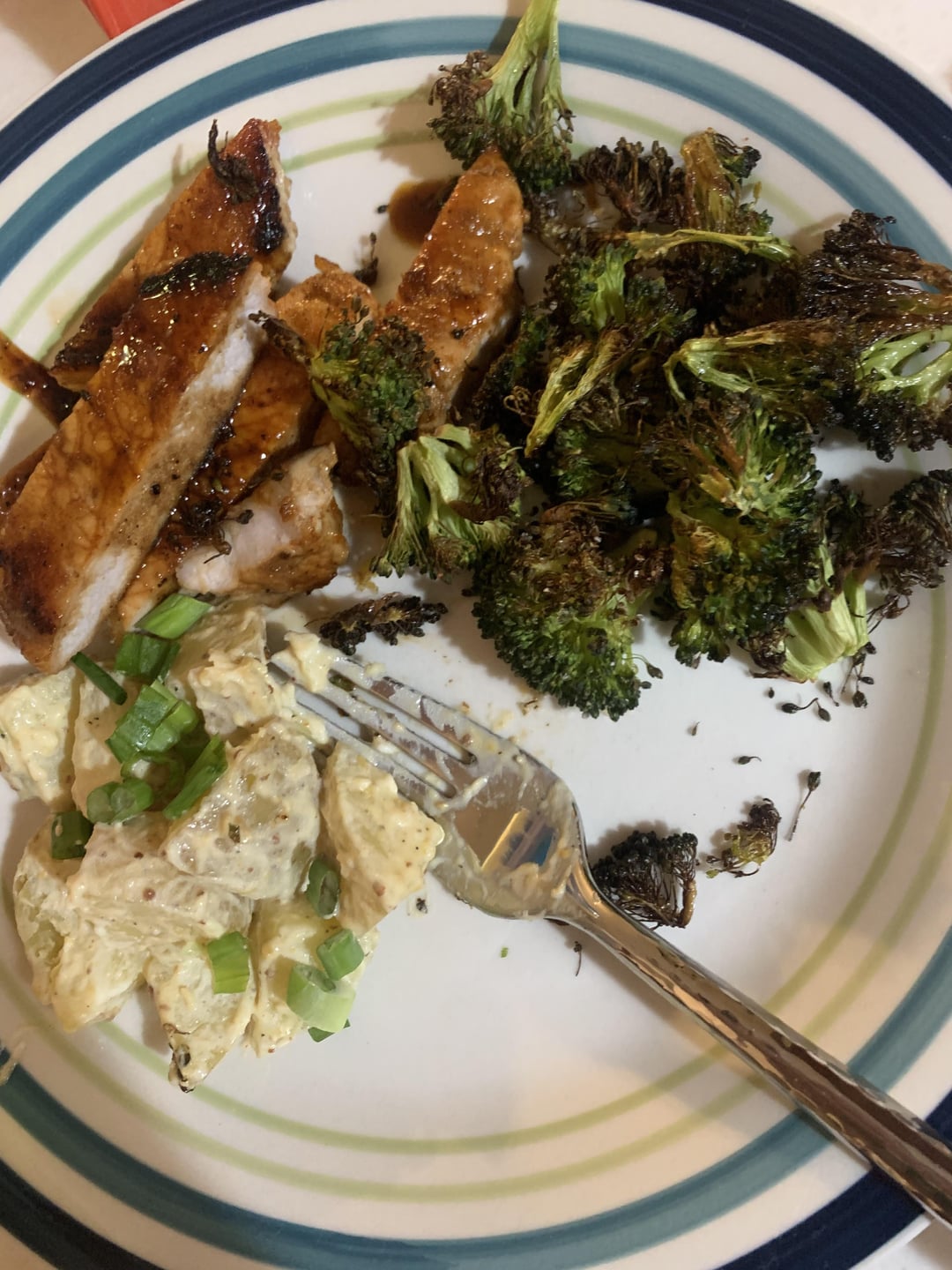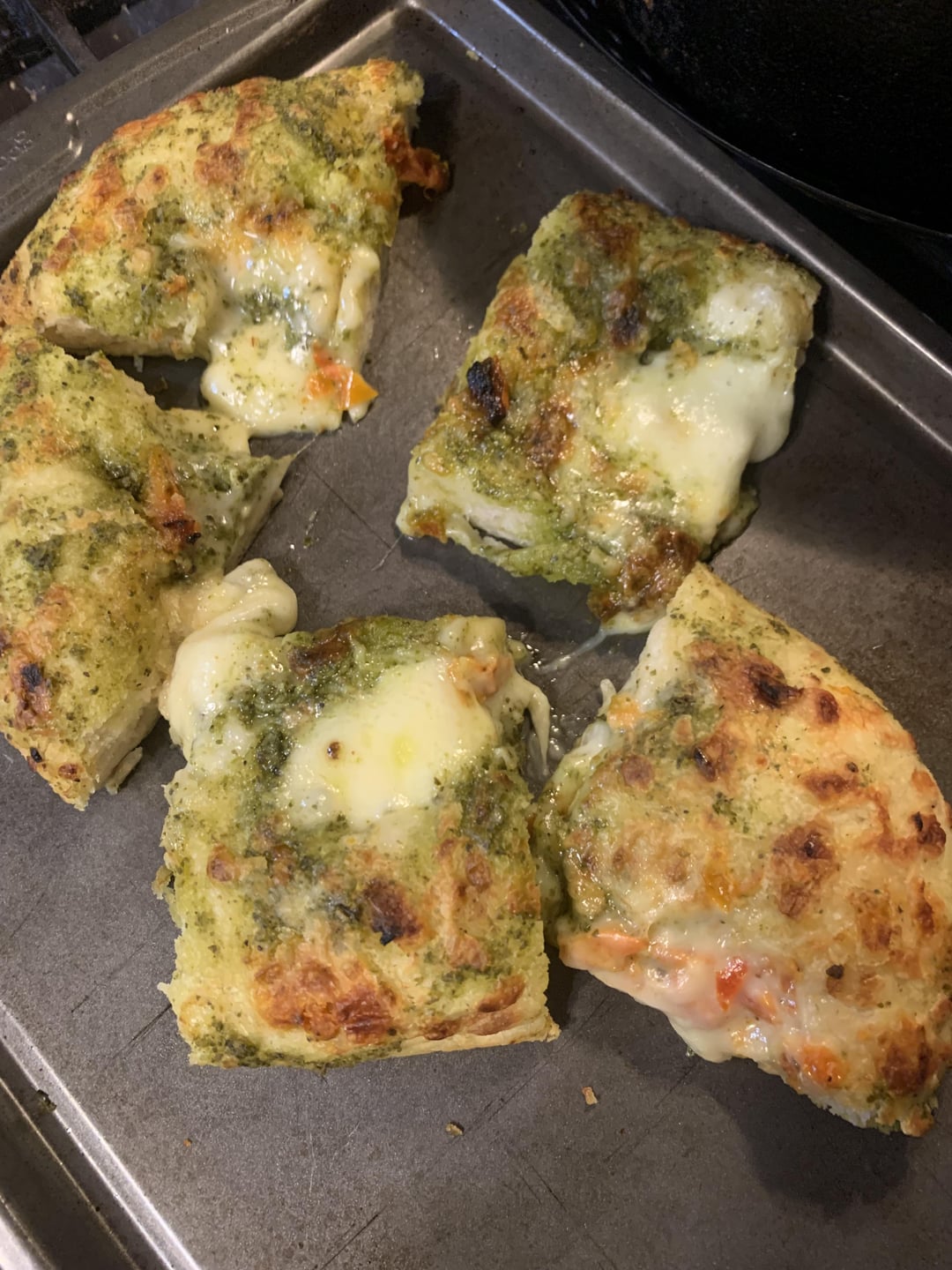 Also made the “honey butter glazed pork chops!” (Yummy) And got an order of the basil and pesto mozerrella focaccia flat bread!! (Which we loved!)