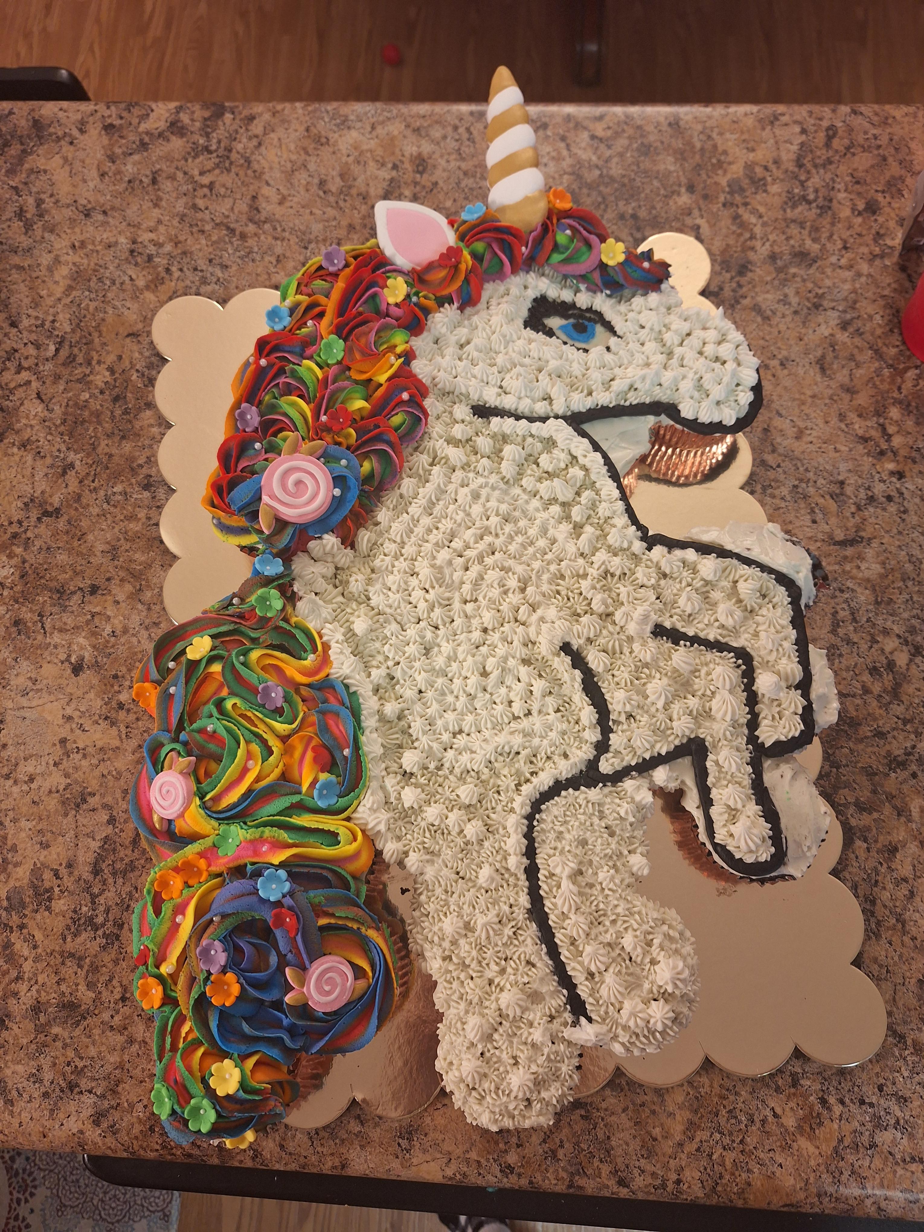 Unicorn pull apart cupcake cake I made for my daughter’s 5th birthdayby luckymama1990 3 Comments Rainbowbranch 2 years ago Super cute! Job well done. crella-ann 2 years ago It’s fantastic! Wonderful job! paintingpajamaspink 2 years ago Nice work! And RIP to your hand after all that star tip pipingWrite A CommentYou must be logged in to post a comment.