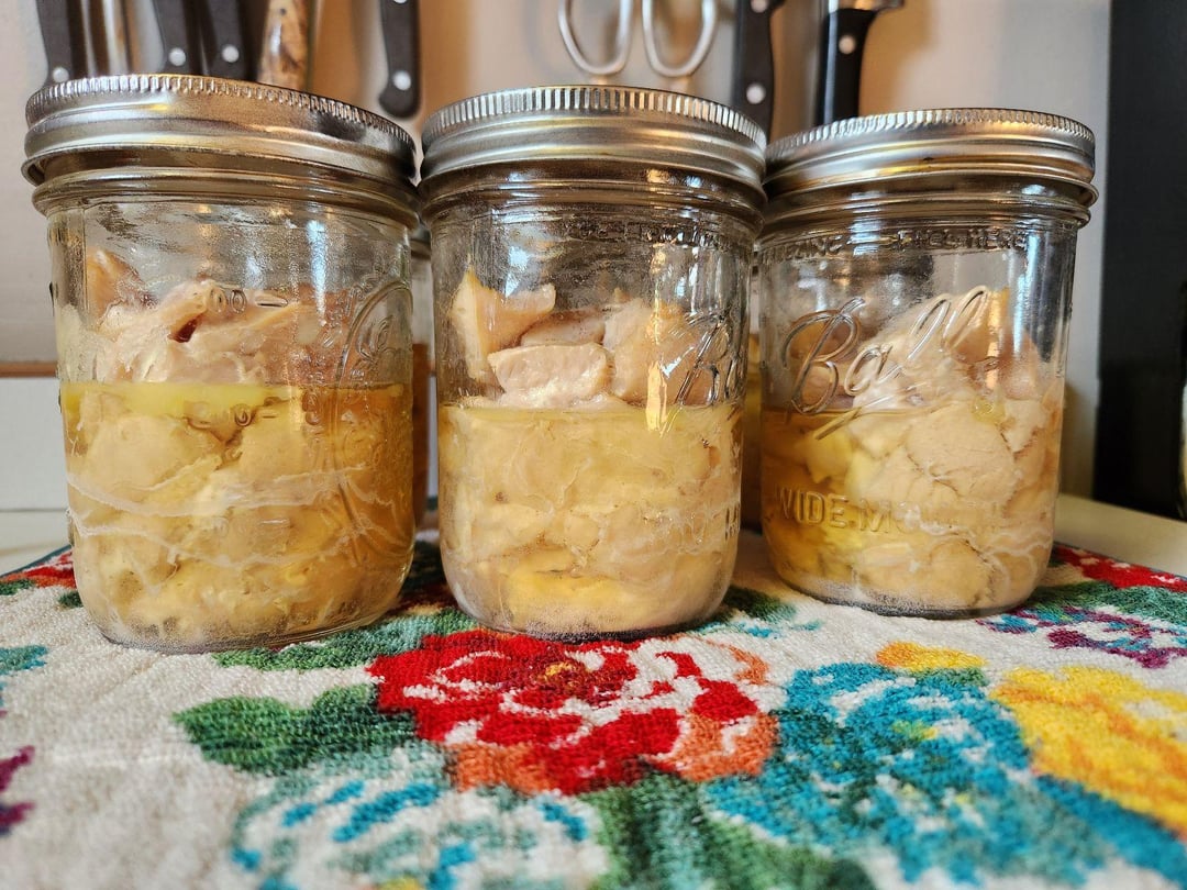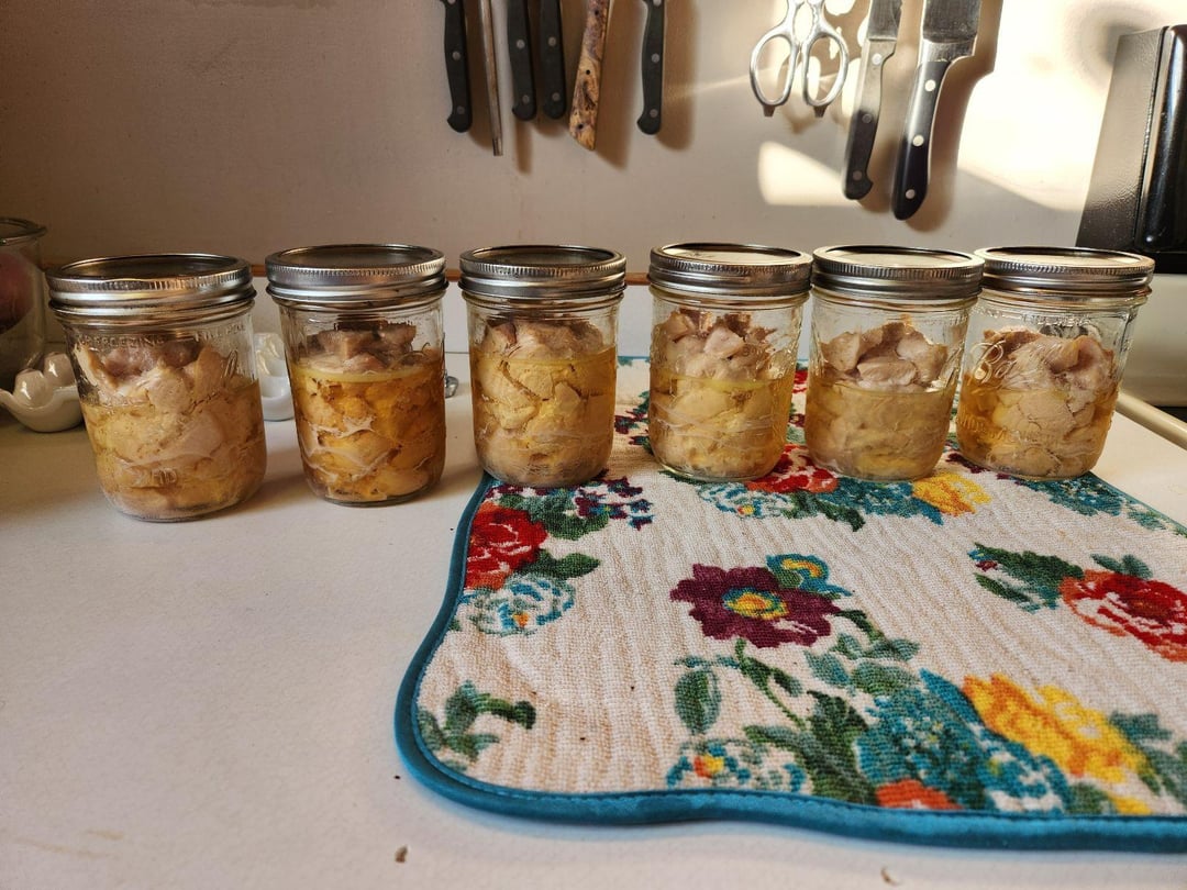 I called the extension office and asked about the raw pack method for chicken and they explained that the liquid level isn’t exactly important with the raw pack method. The main problem is the chicken not submerged may discolor some over time but that it’s just as shelf stable as one with more liquid.