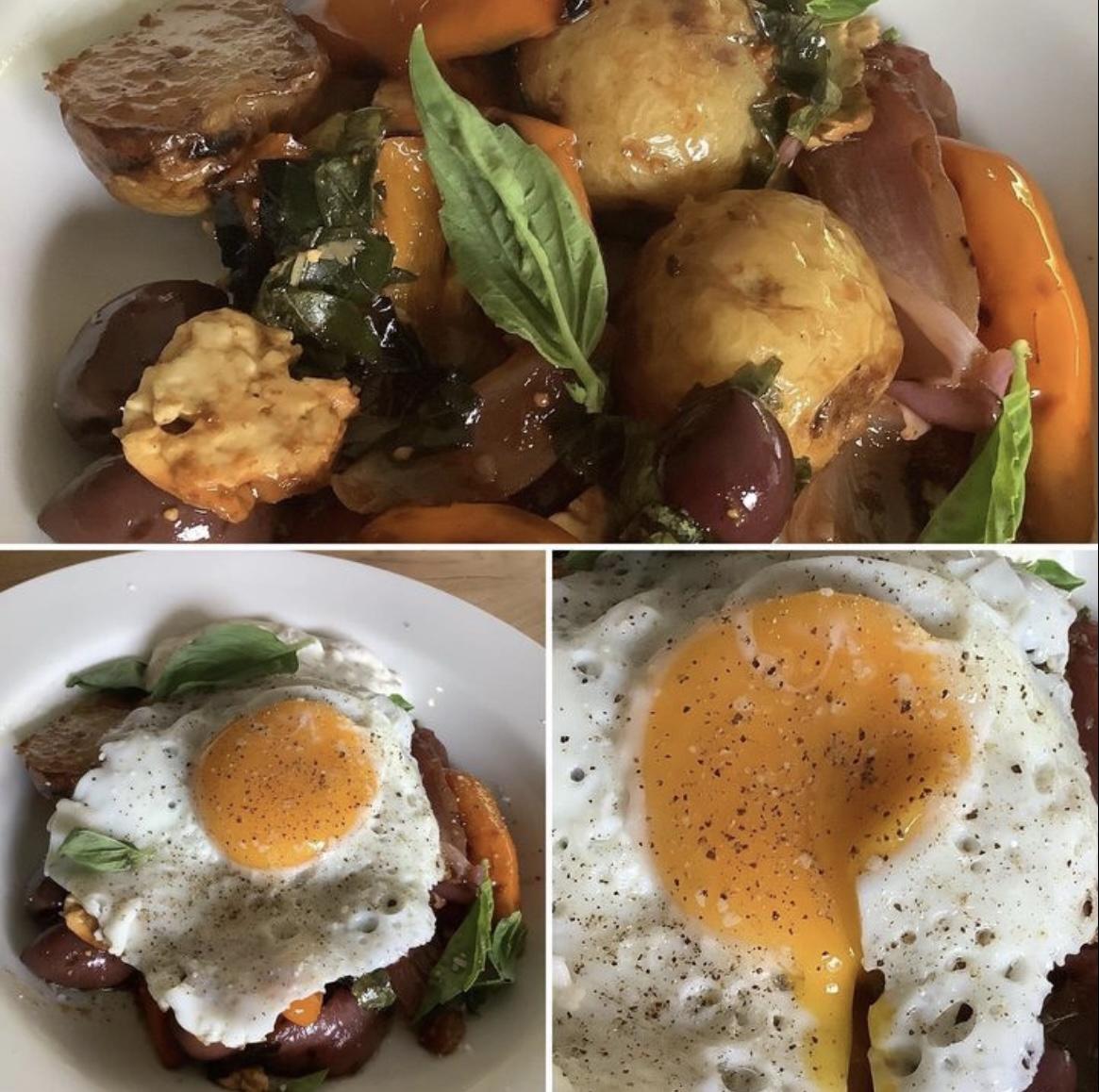 As much as I enjoy traditional egg and toast photos, I truly love seeing unexpected eggs making leftovers delicious. My sunny on leftover grilled Greek salad with feta and potatoes) Let’s see your leftovers shine!