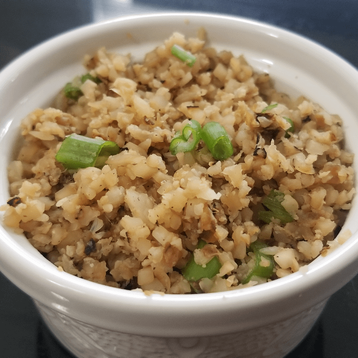 6. Continue cooking until the cauliflower rice is heated through and any excess moisture has evaporated.