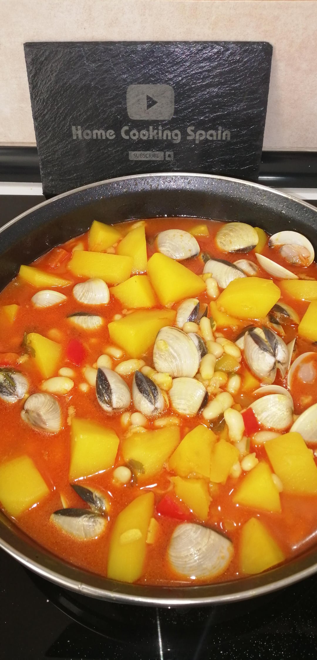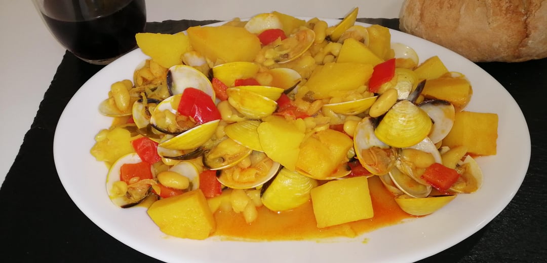 HomeCookingSpain 2 years ago Clams, White Beans and Potatoes Stew.🧾Ingredients for 2 People:.1Kg Clams400g Jar of White Beans2 Potatoes700ml Seafood/Fish Broth100ml White WineRed Pepper3 Garlic ClovesFresh Parsley1 Tsp PaprikaYellow Food ColourantOlive OilSalt.➡️Recipe Video: [https://youtu.be/G0dTK05x1I0](https://youtu.be/G0dTK05x1I0)