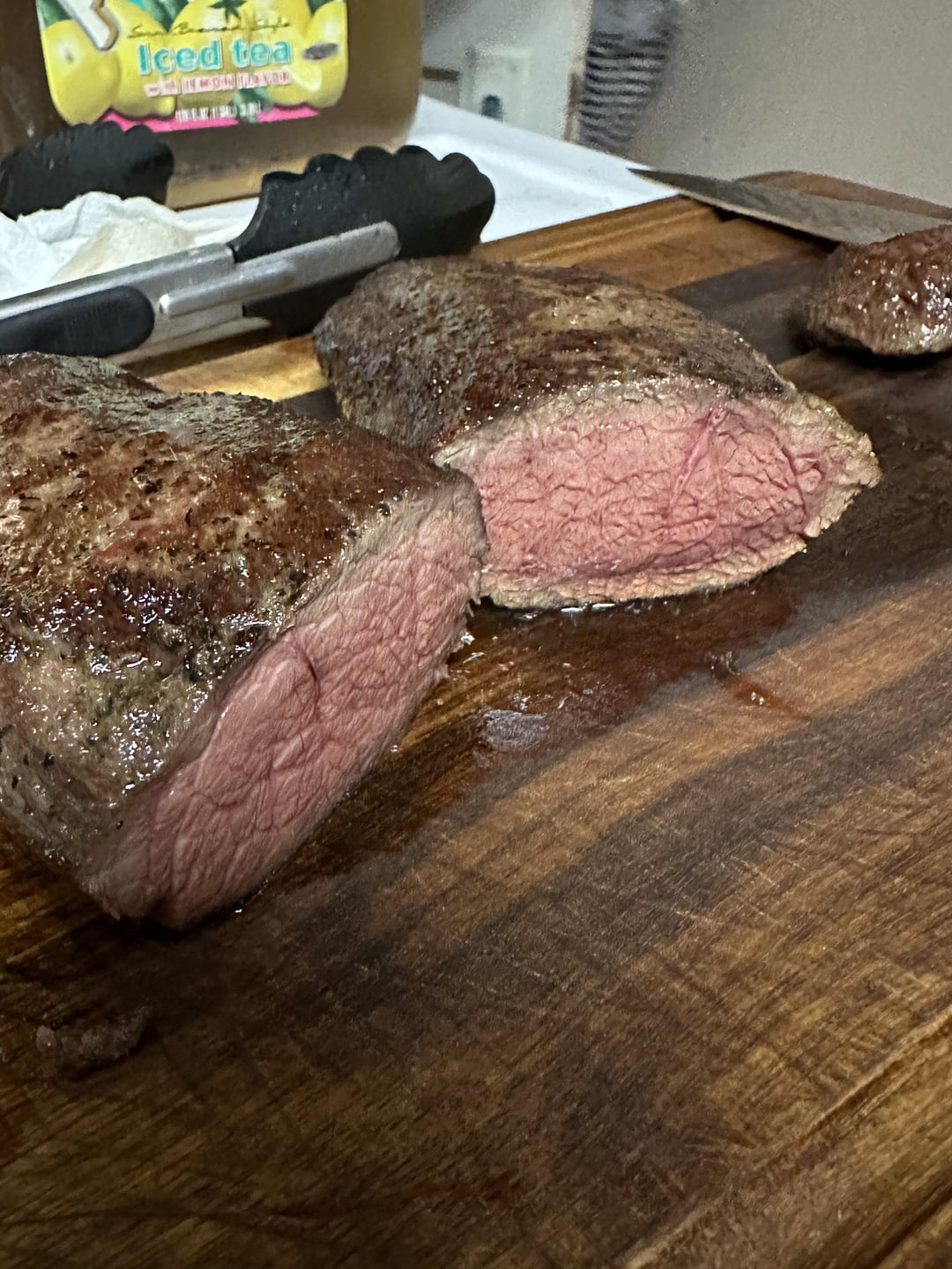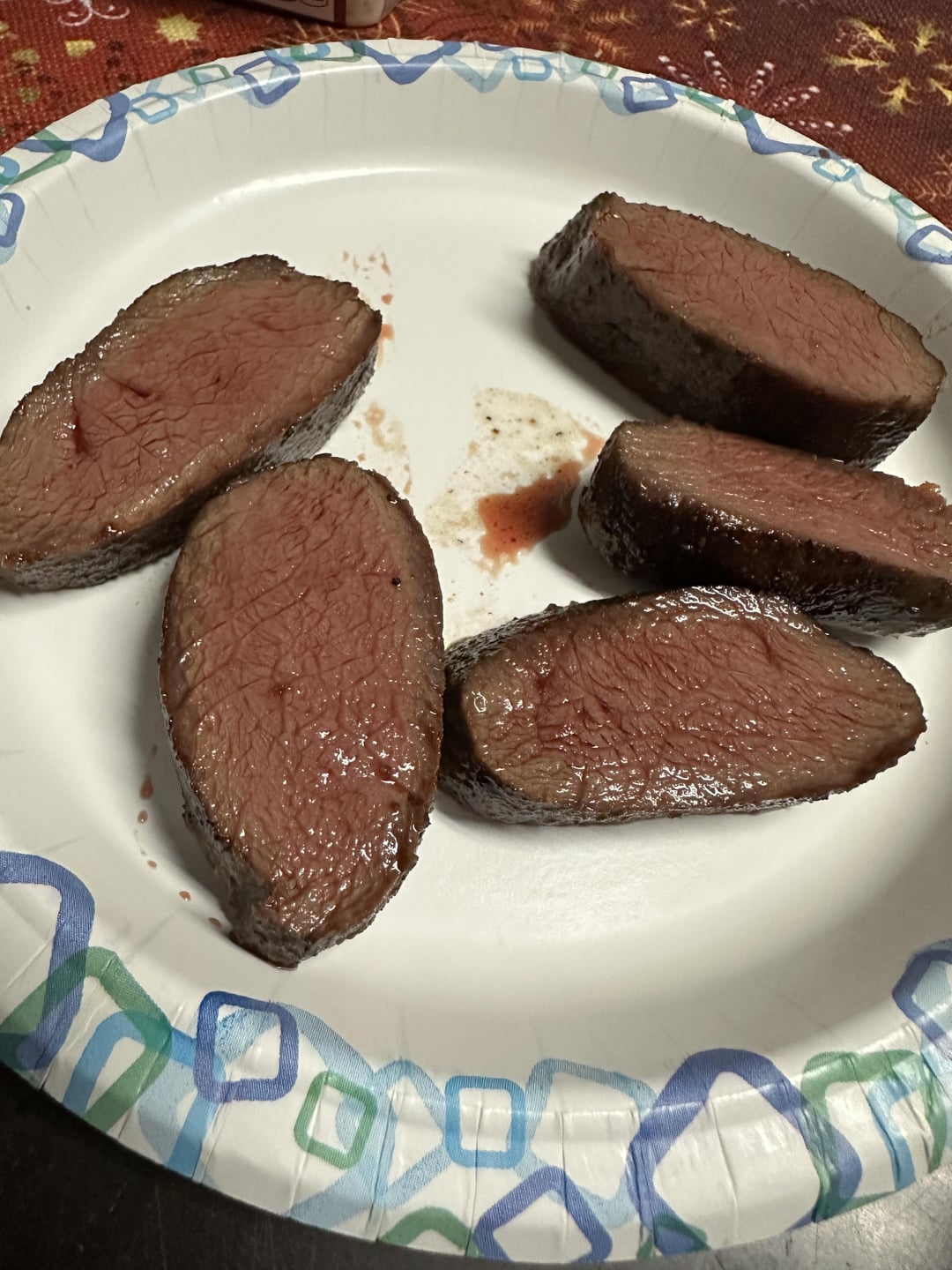 Harvested in November took its bath today. Simple salt pepper and garlic powder in the bag seared on the stovetop. Sear could have went a tad longer but it was my first venison loin attempt and i didn’t want to over do it. It was so tender and juicy