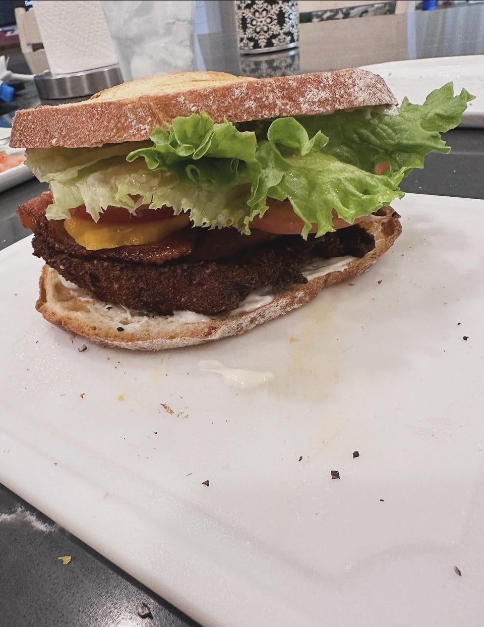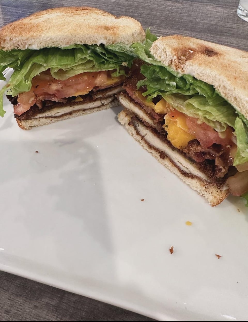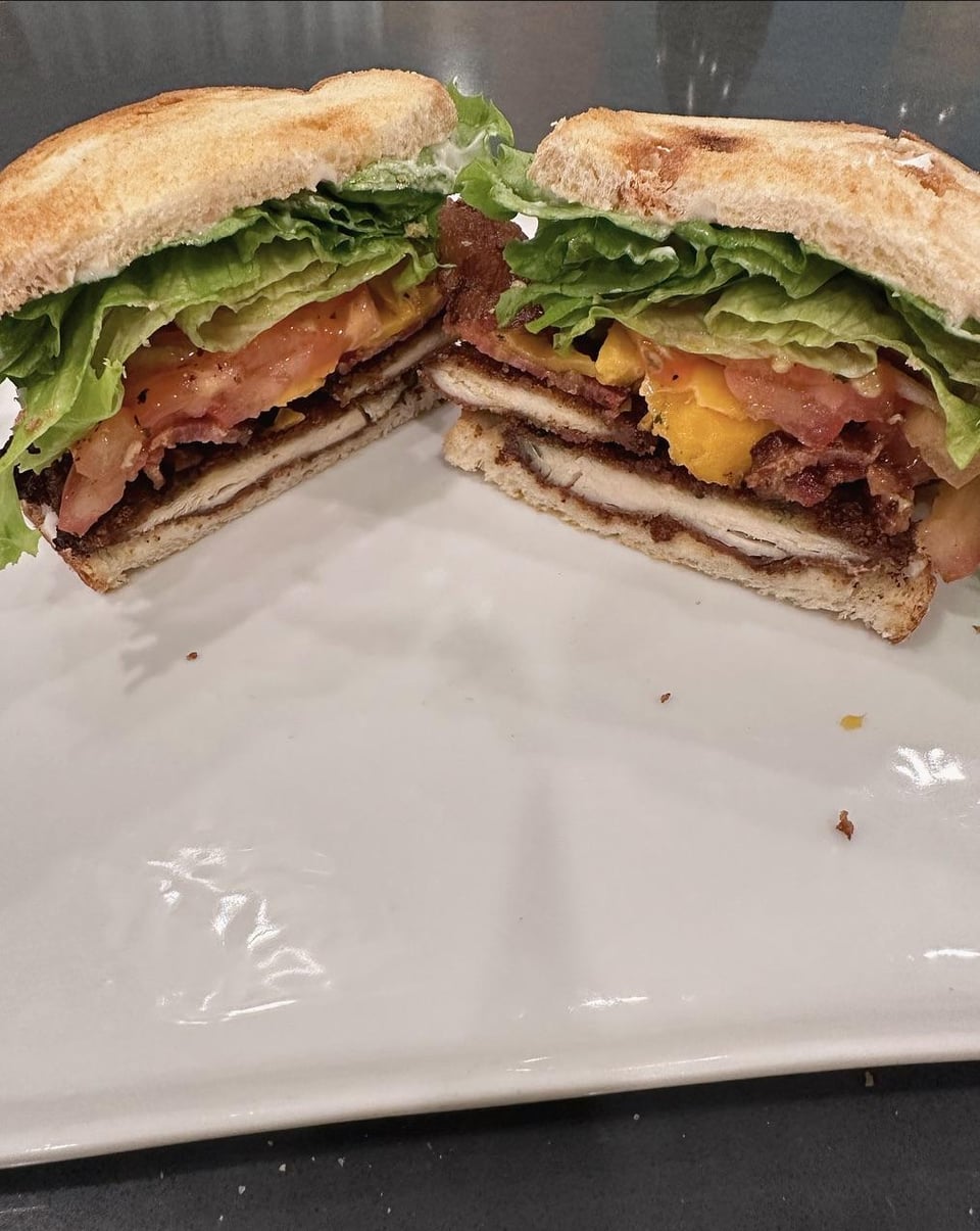 leftover Italian cutlet, center cut bacon, sharp cheddar, LTO, mayo, oil+vin, frank’s, and hot honey. so good.by makeupyourworld Write A CommentYou must be logged in to post a comment.