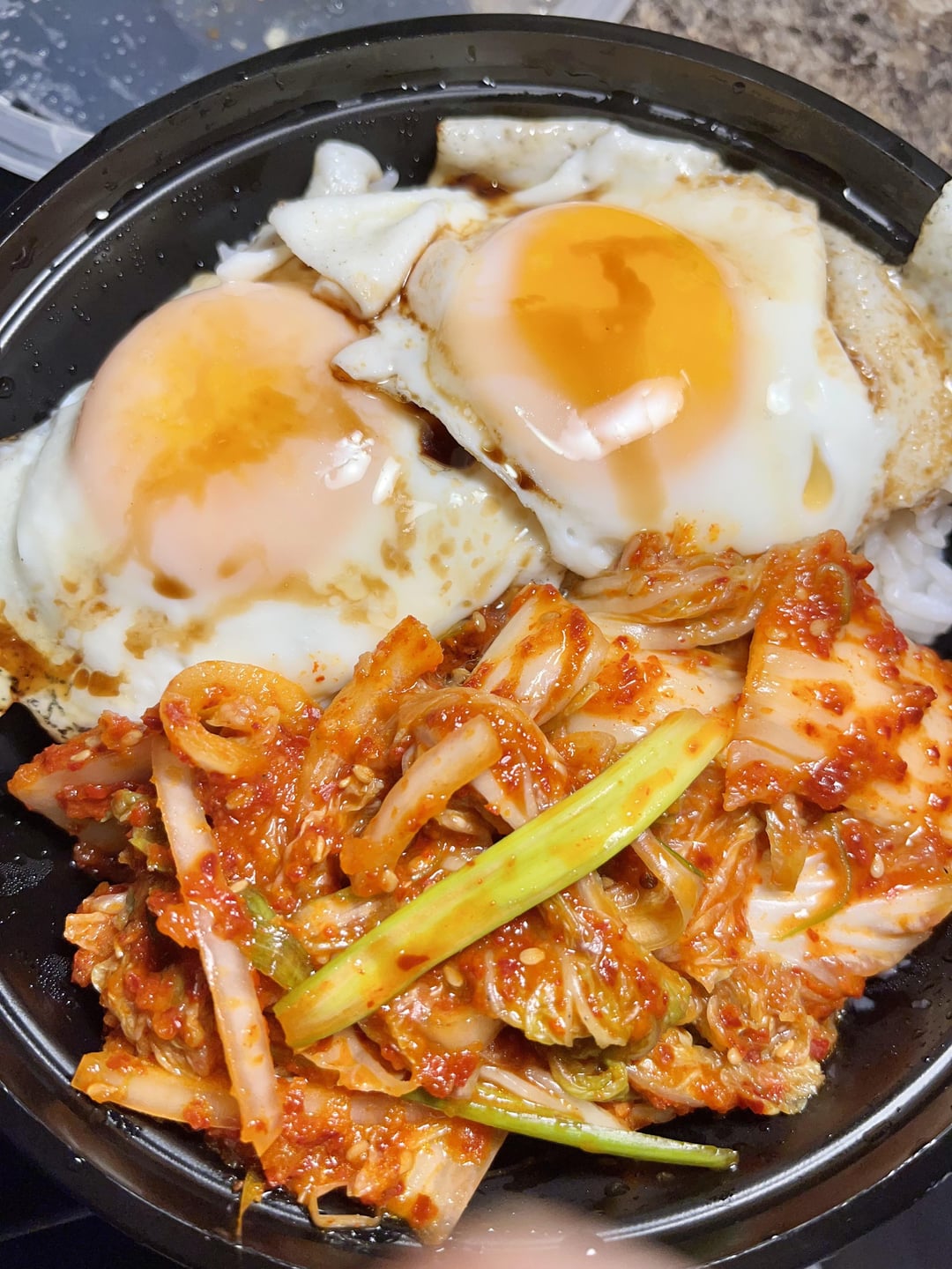 I’m feeling under the weather so I made a simple dinner of fried eggs with soy sauce and sesame oil, over rice with a healthy amount of freshly made geotjeori. I bought everything yesterday and don’t really have anywhere to store so much cabbage, and woke up feeling not great, but the kimchi isn’t going to make itself, right? Lmaooo